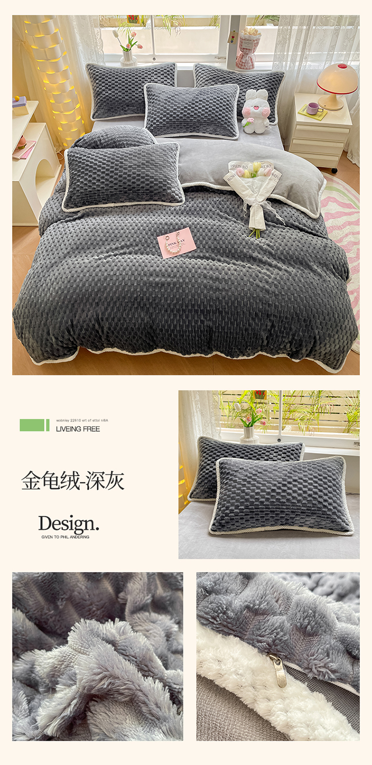 当前位置: 91家纺网 > 商品网购 > 床品套件 > 四件套 > 全棉普通四件套 > 梦之岛 2023包边AB面牛奶绒印染提花金龟绒加厚保暖四件套 金龟绒-深灰