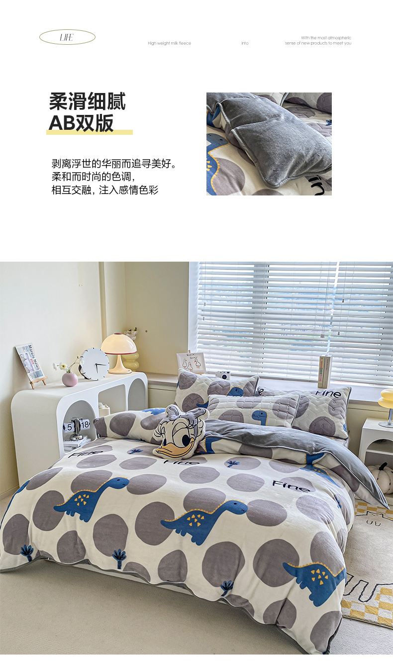 卡伦家纺 2025新款A类牛奶绒印花被套 星幻恐龙