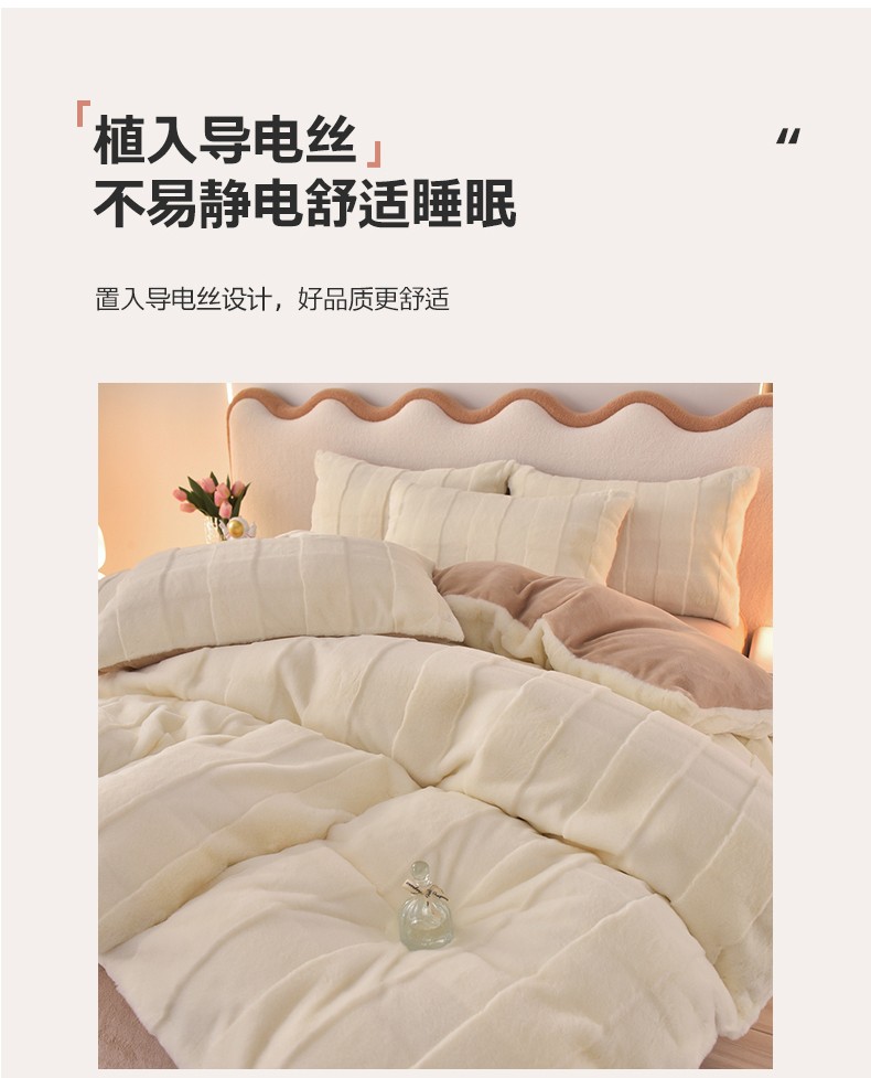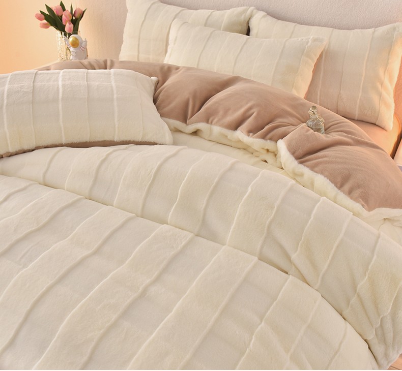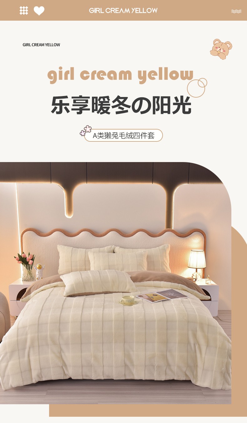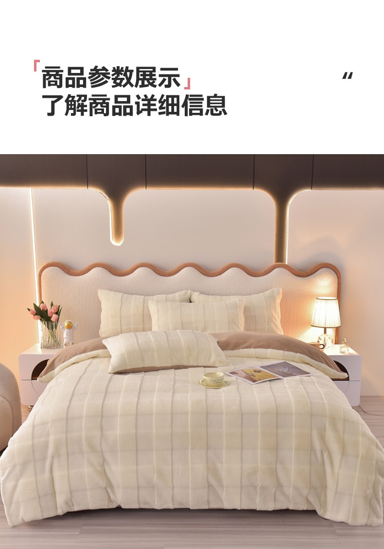 商品名称:畅畅家纺 2023新款兔毛绒兔兔绒懒兔绒立体剪花牛奶绒四件套 米黄+咖
