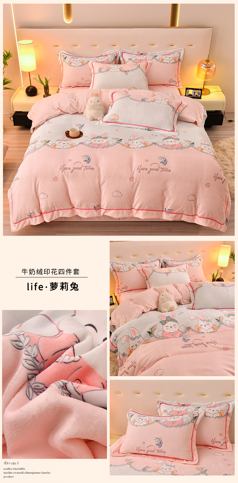 商品名称:同田家纺 2023新款加厚保暖牛奶绒印花四件套 萝莉兔