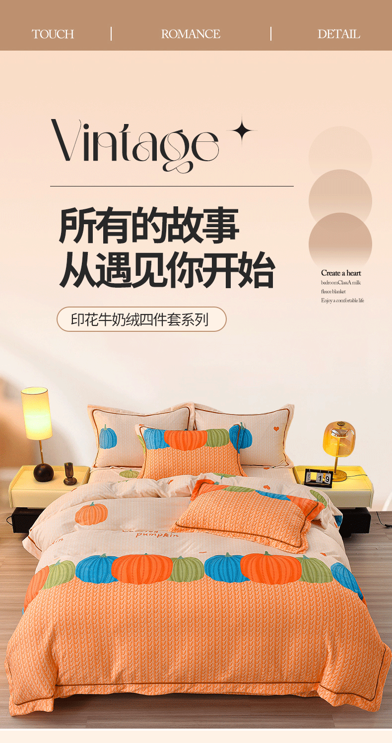 (总)同田家纺 2023新款加厚保暖牛奶绒印花四件套,丽塔,多维,安娜,富贵金瓜,玫瑰谷,绿茵,萝莉兔