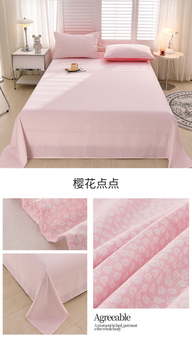 商品名称:圣楚 2024新款小竺棉床单 樱花点点