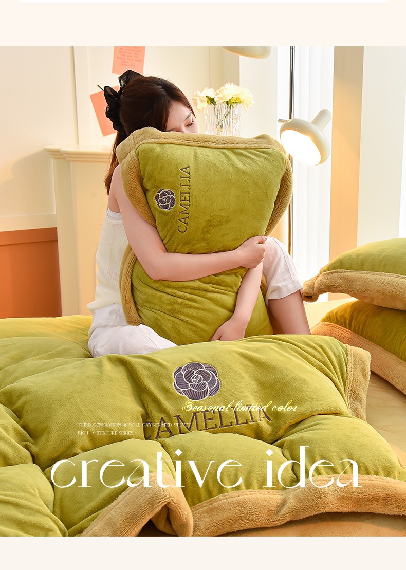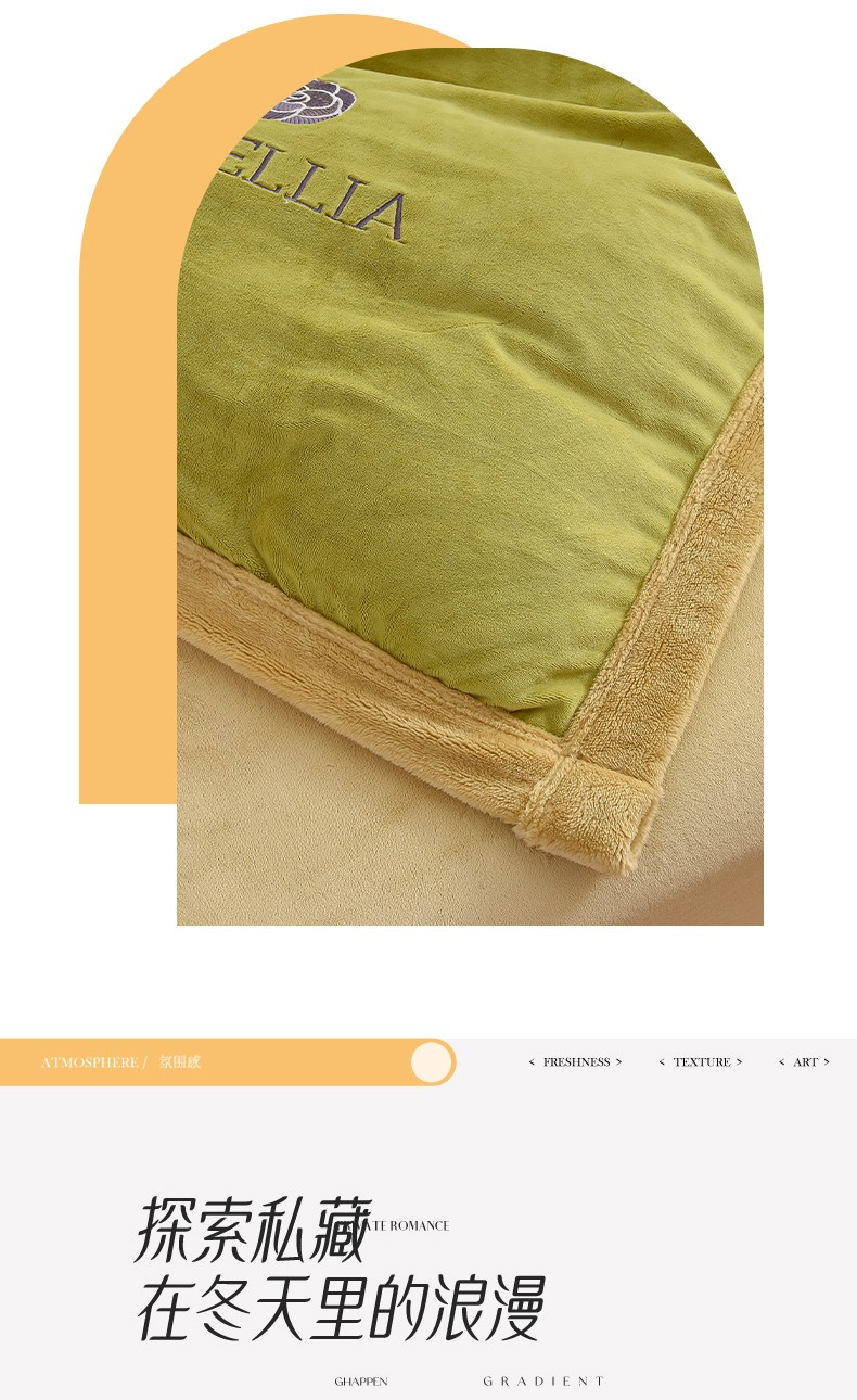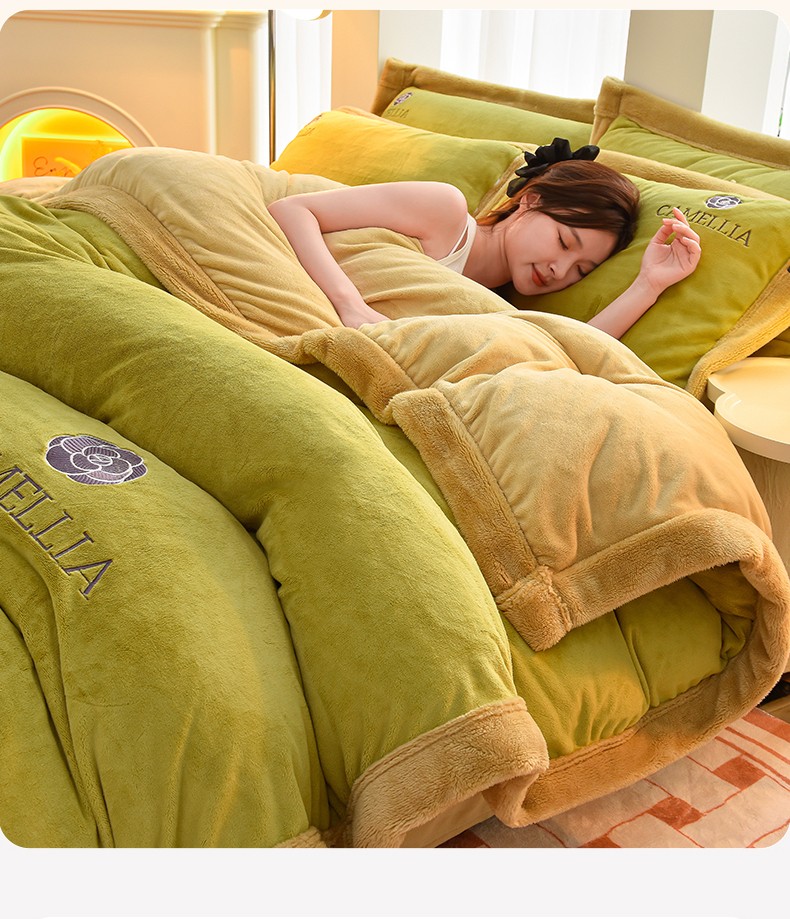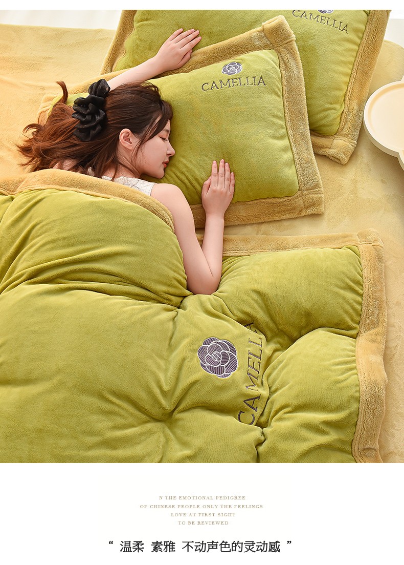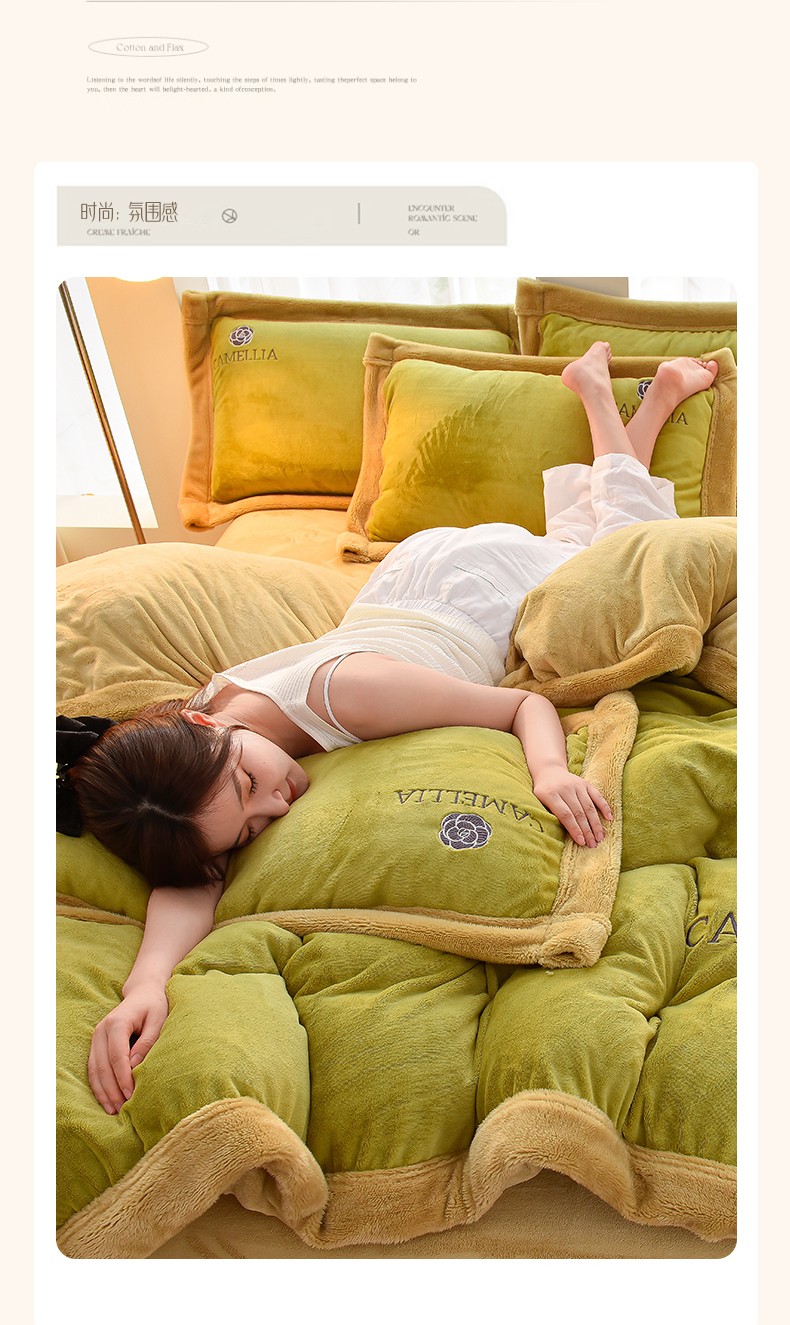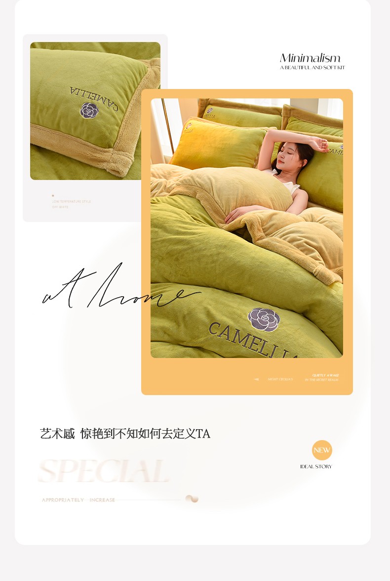 笙意 新款加厚牛奶绒刺绣四件套-贝琳达系列 贝琳达-果绿+奶茶