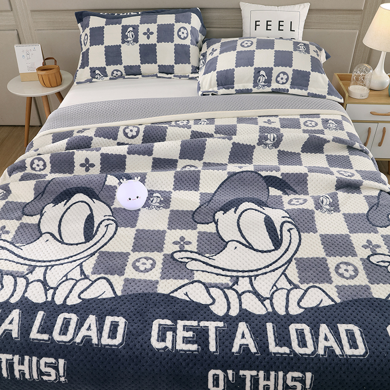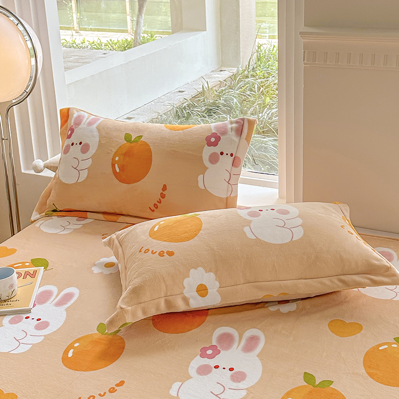 梦精灵 2026秋冬新款印花牛奶绒单床盖宽边加厚 直角款-姜黄,直角款-姜黄