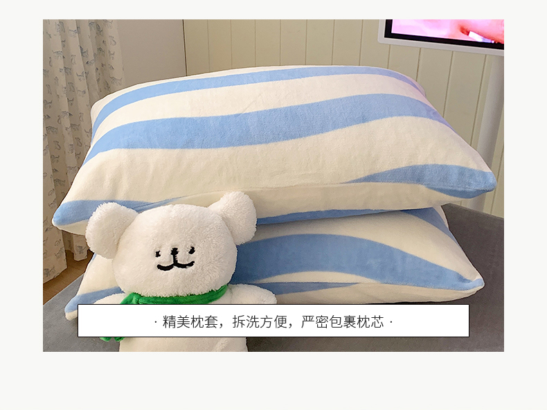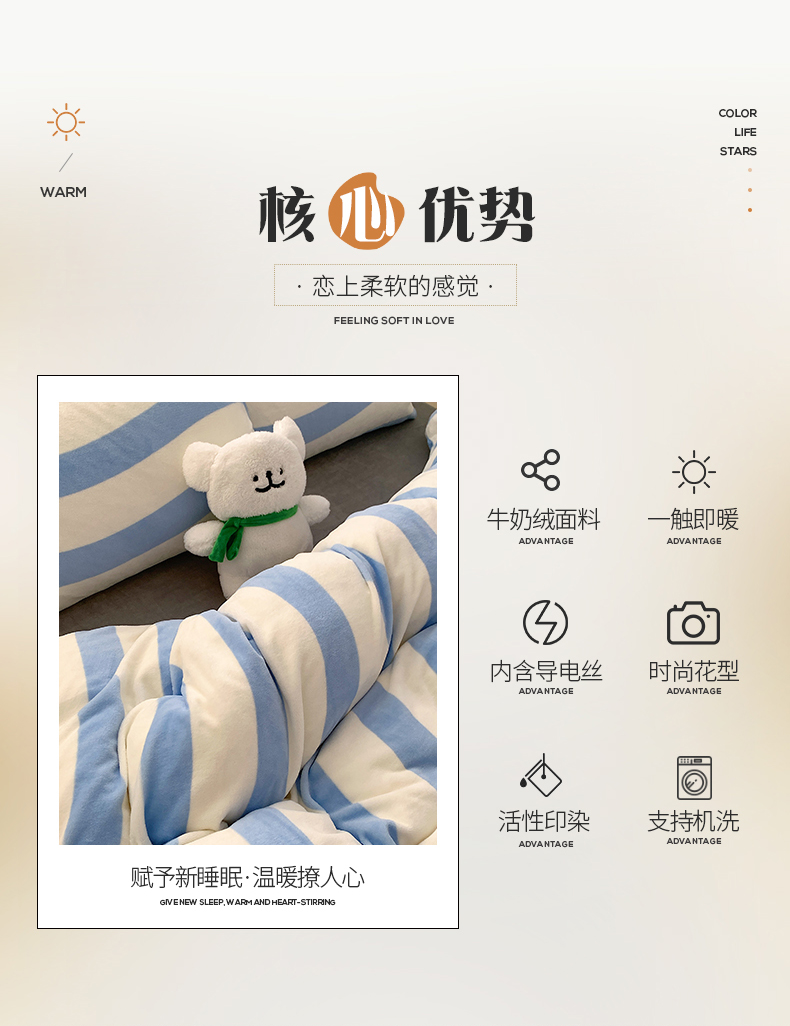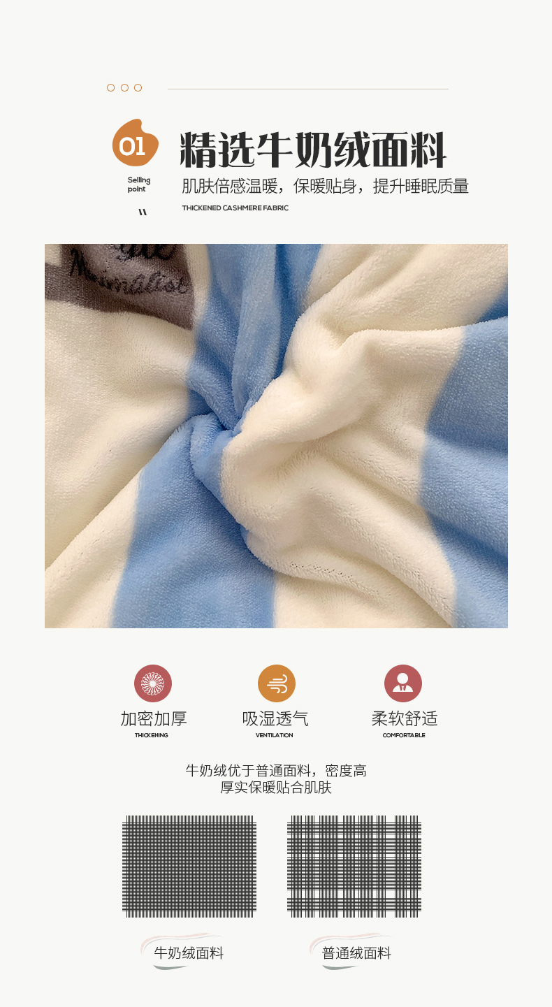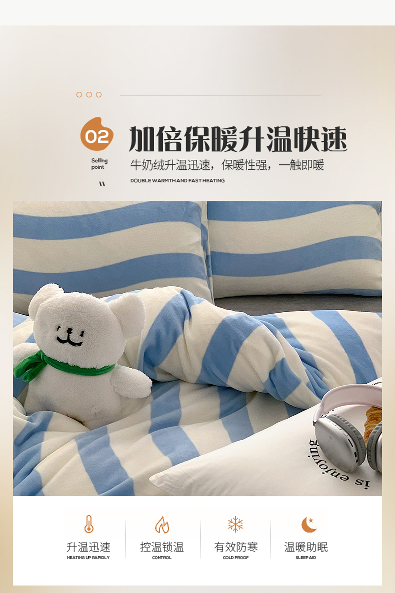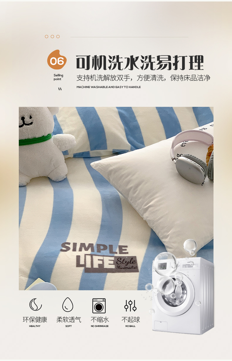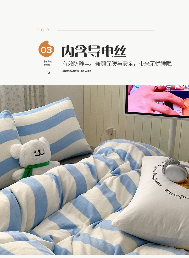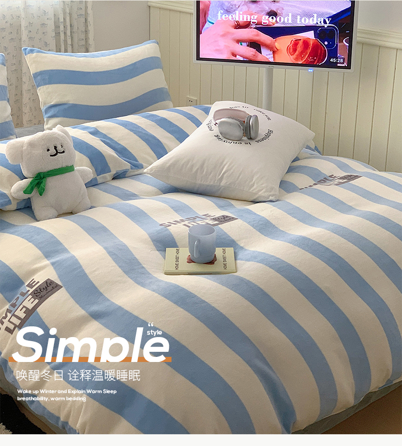 商品名称:桃子家居 2023新款ins简约时尚奶油格子北欧极简加厚牛奶绒四件套 典雅蓝