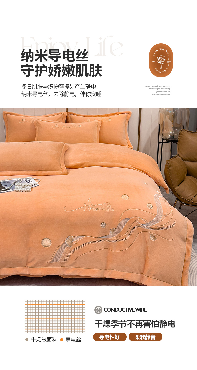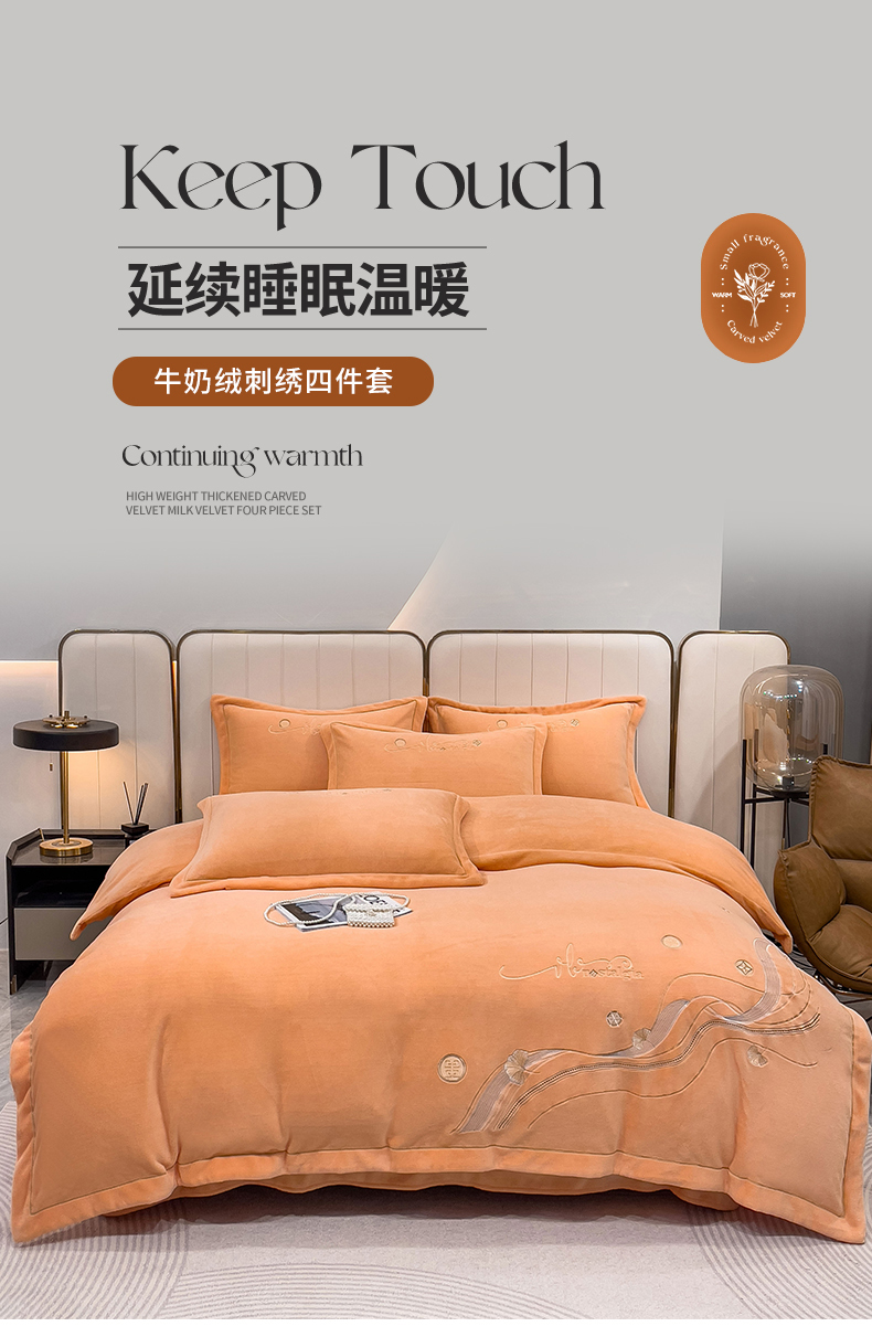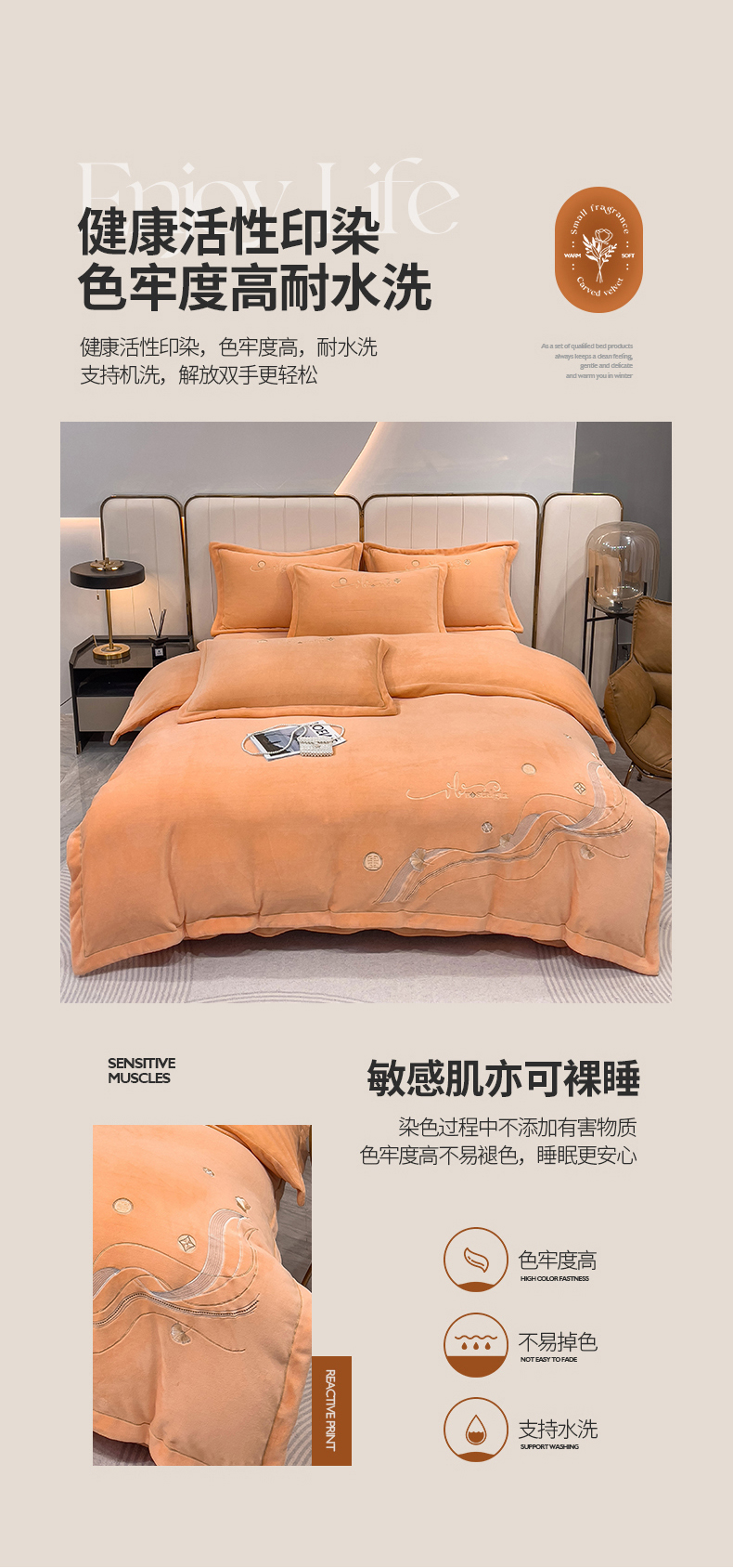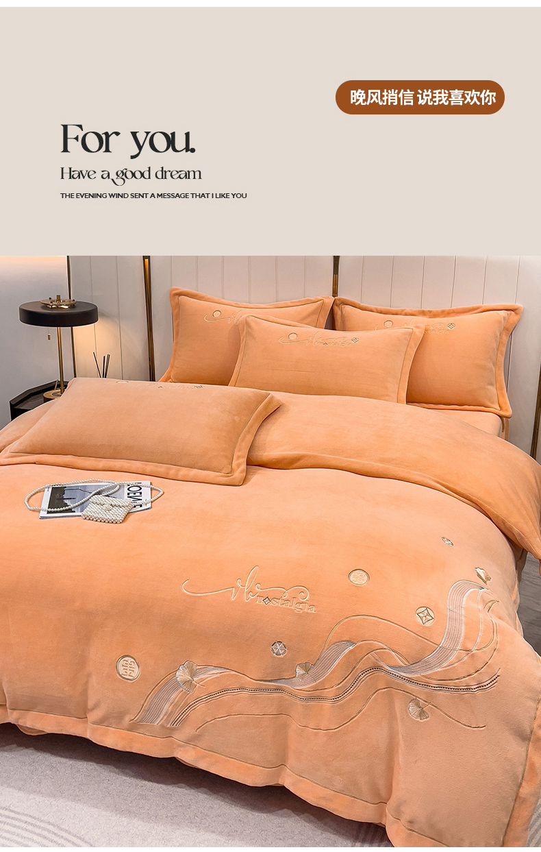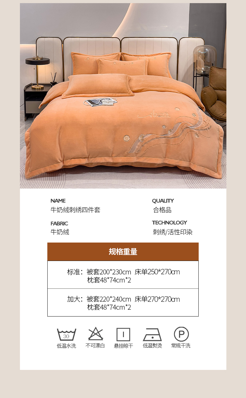 (总)昊翔家纺 2025新款牛奶绒宽边刺绣四件套格调,格调-橙色,格调-兰色,格调-浅绿,格调-浅驼,格调-胭脂粉,格调-银灰