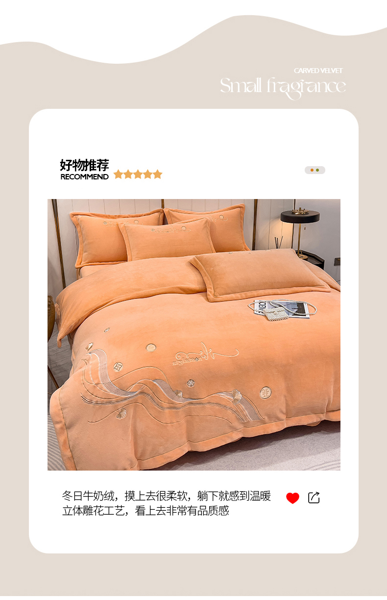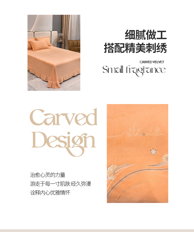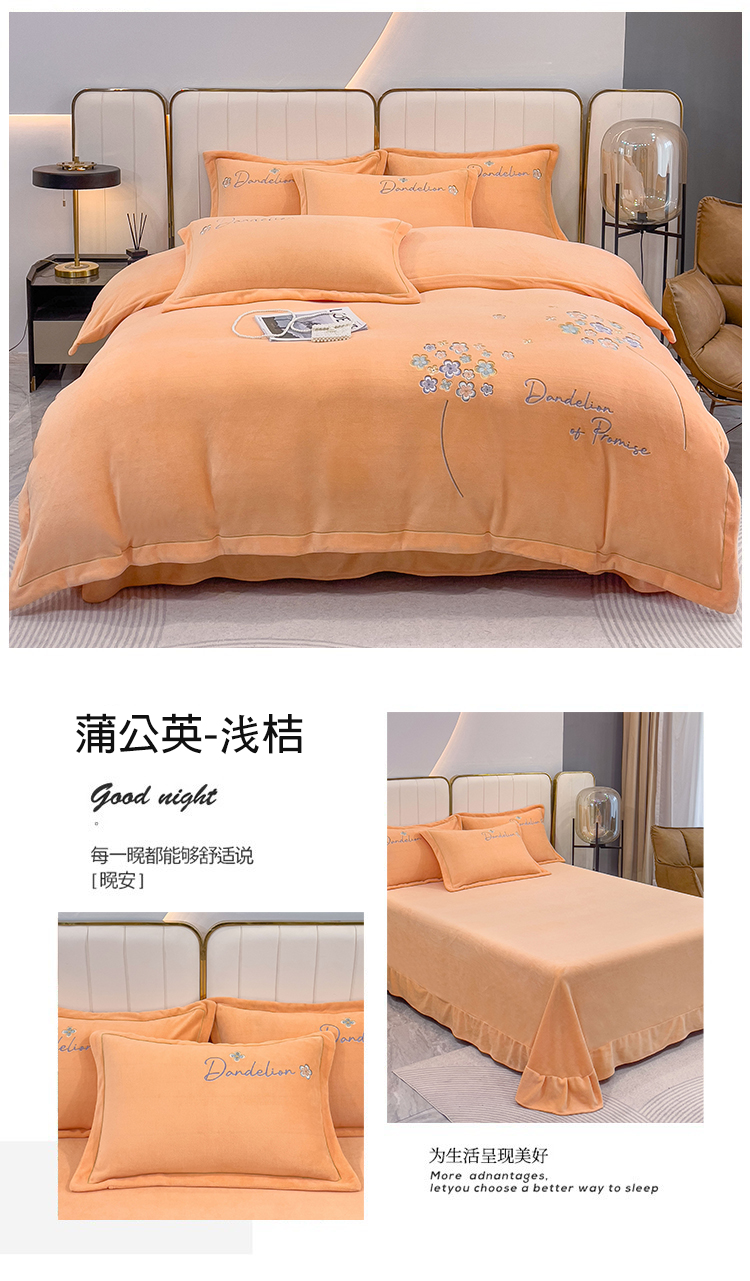 (总)昊翔家纺 2025新款全消光蚕丝绒段角刺绣四件套花之语,花之语-粉色,花之语-桔色,花之语-咖色,花之语-浅蓝,花之语-森林绿,花之语-银灰