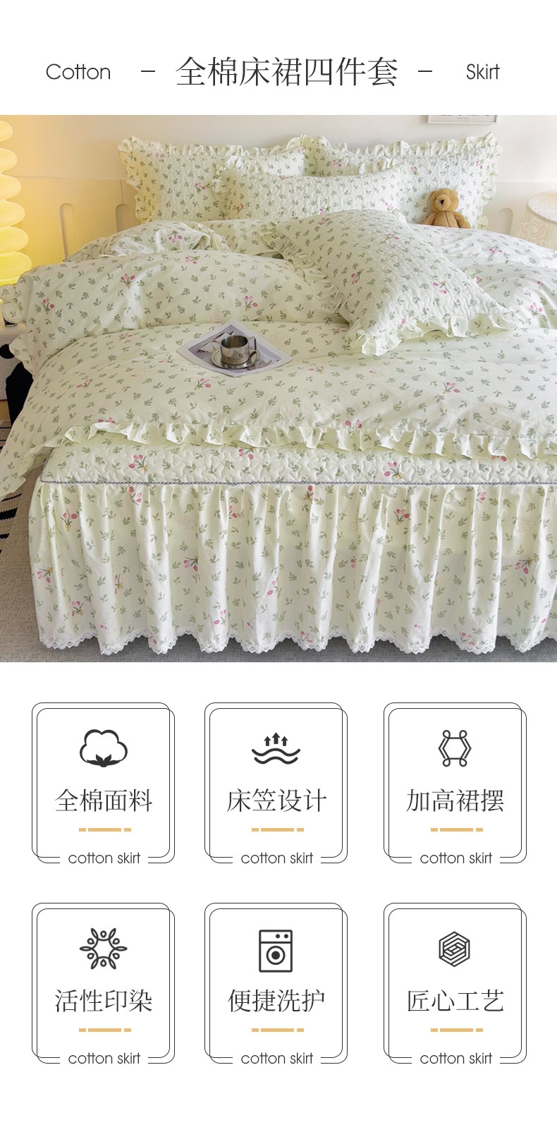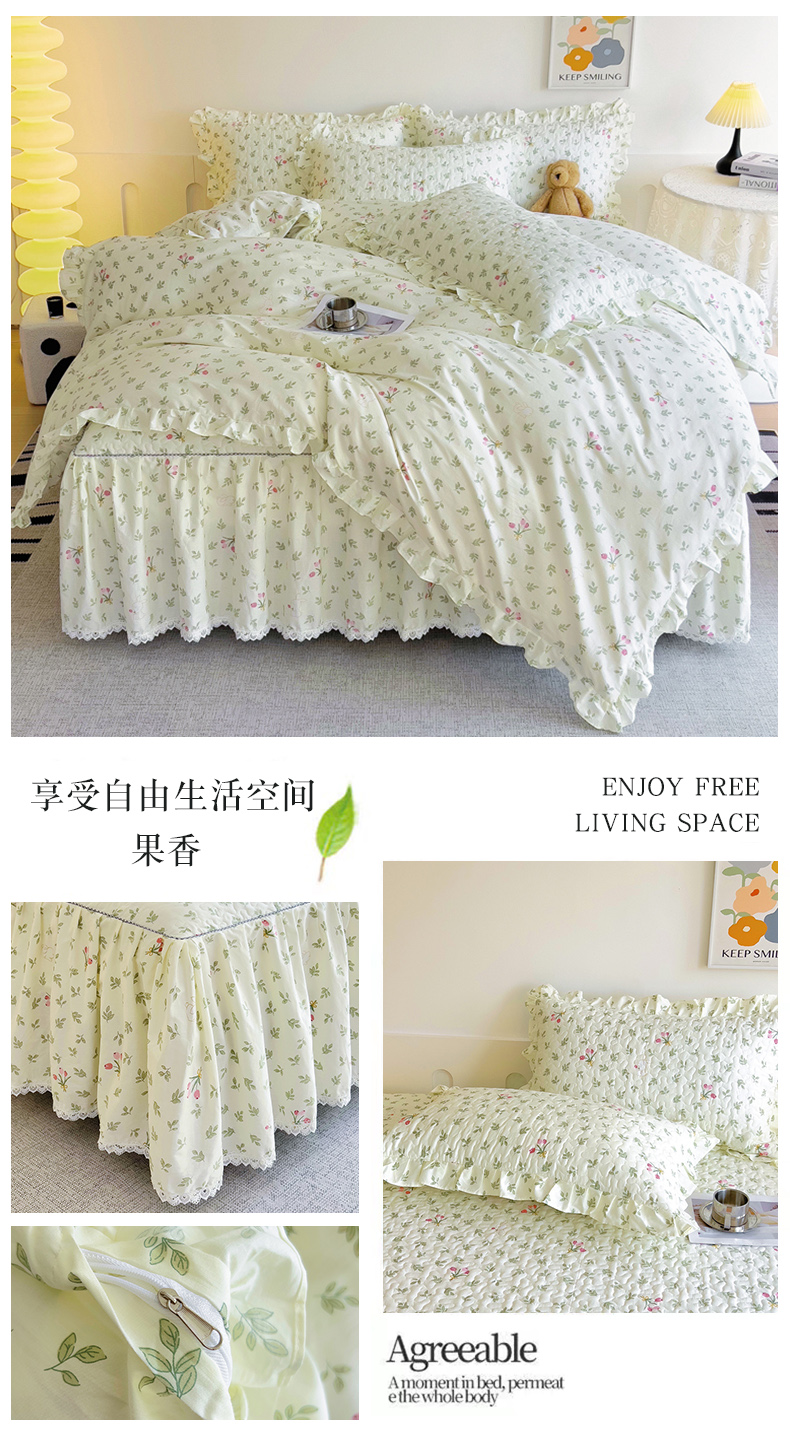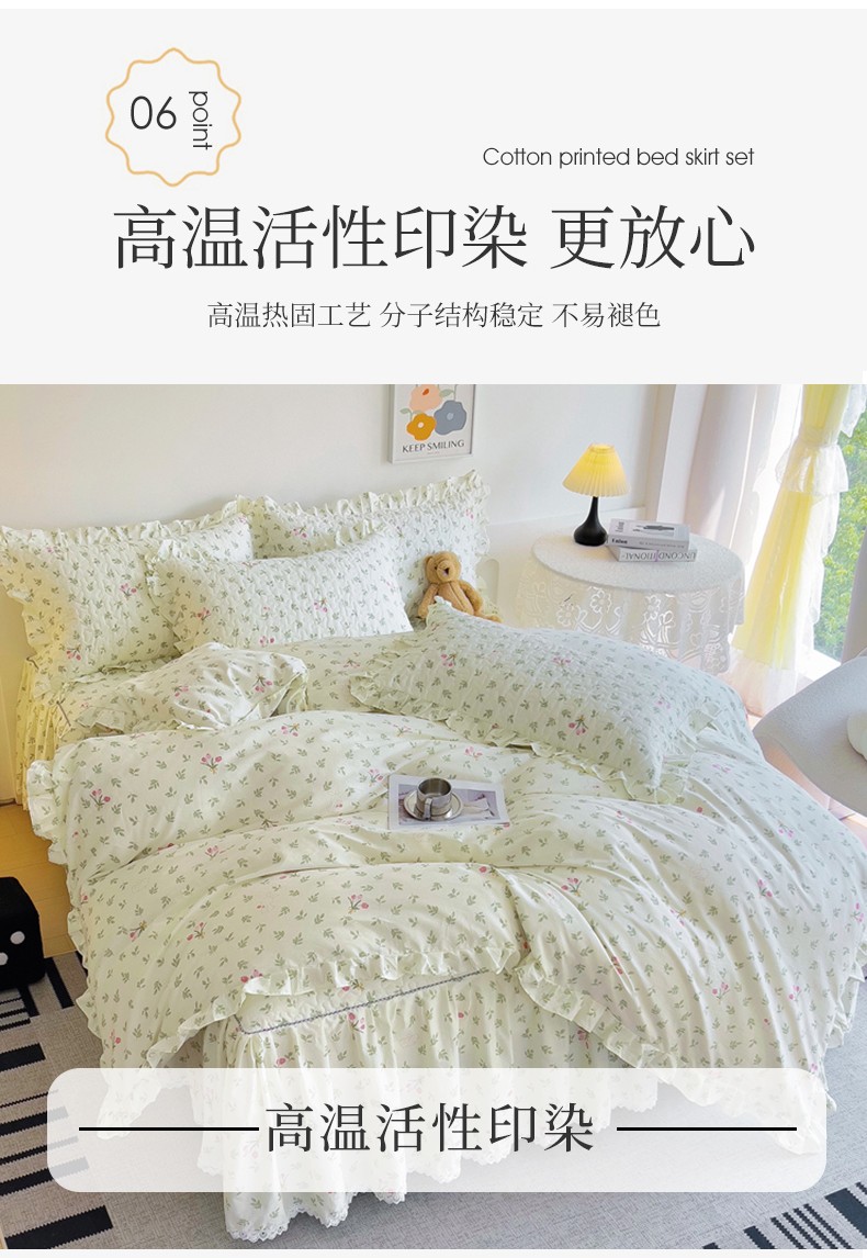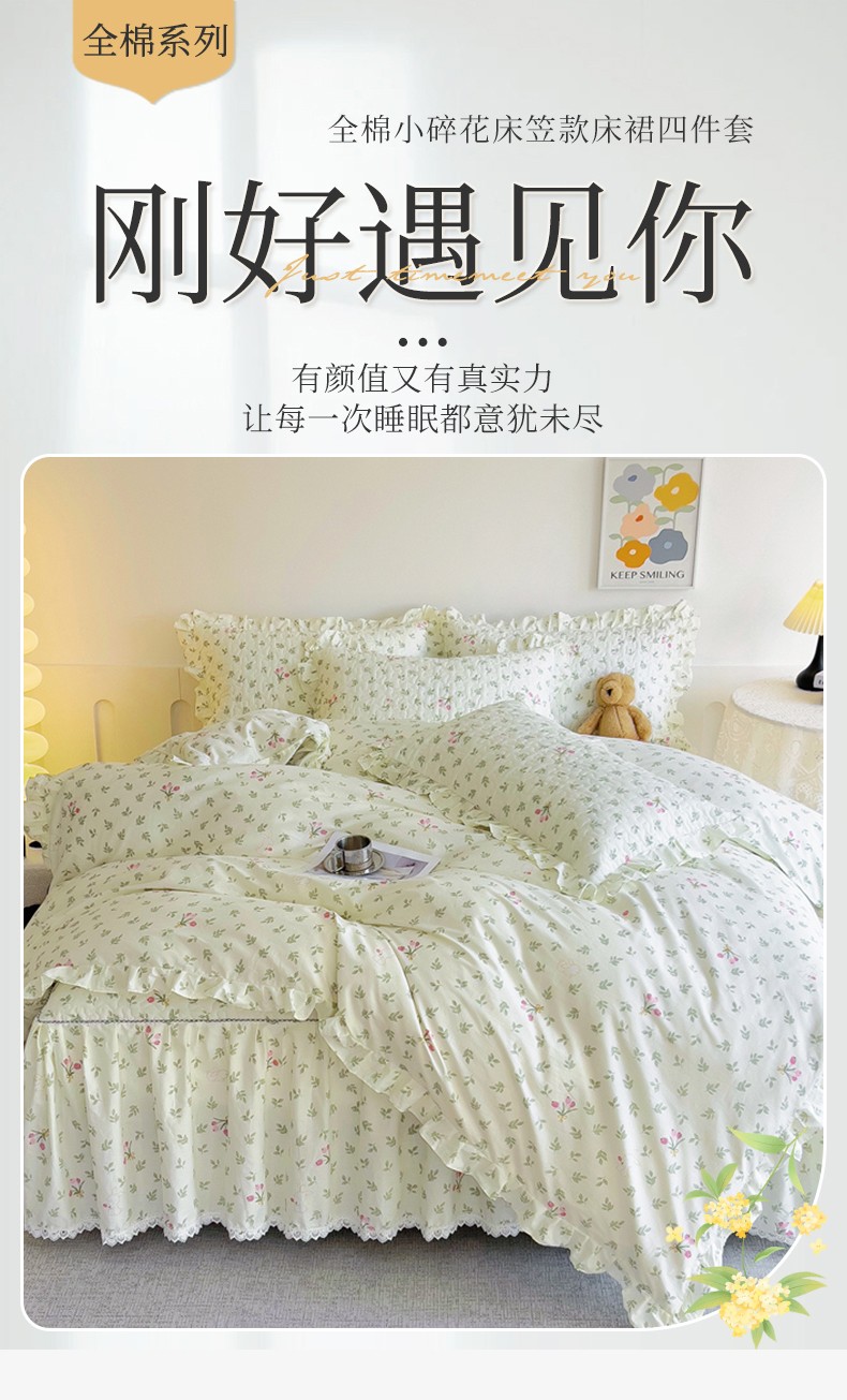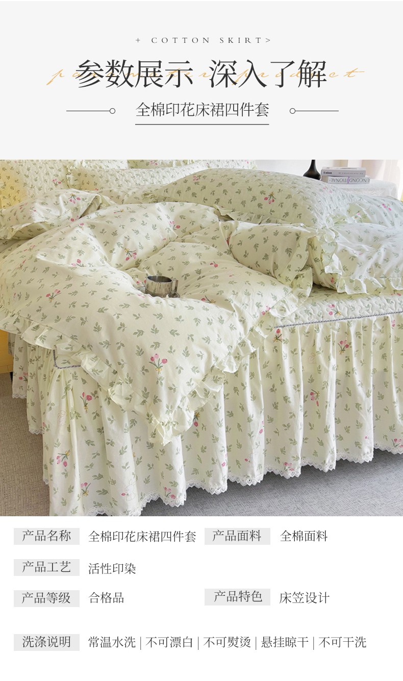 当前位置: 91家纺网 > 商品网购 > 床品套件 > 四件套 > 全棉普通四件套 > 十个点 2024新款全棉印花床笠式床裙四件套-樱桃系列 果香