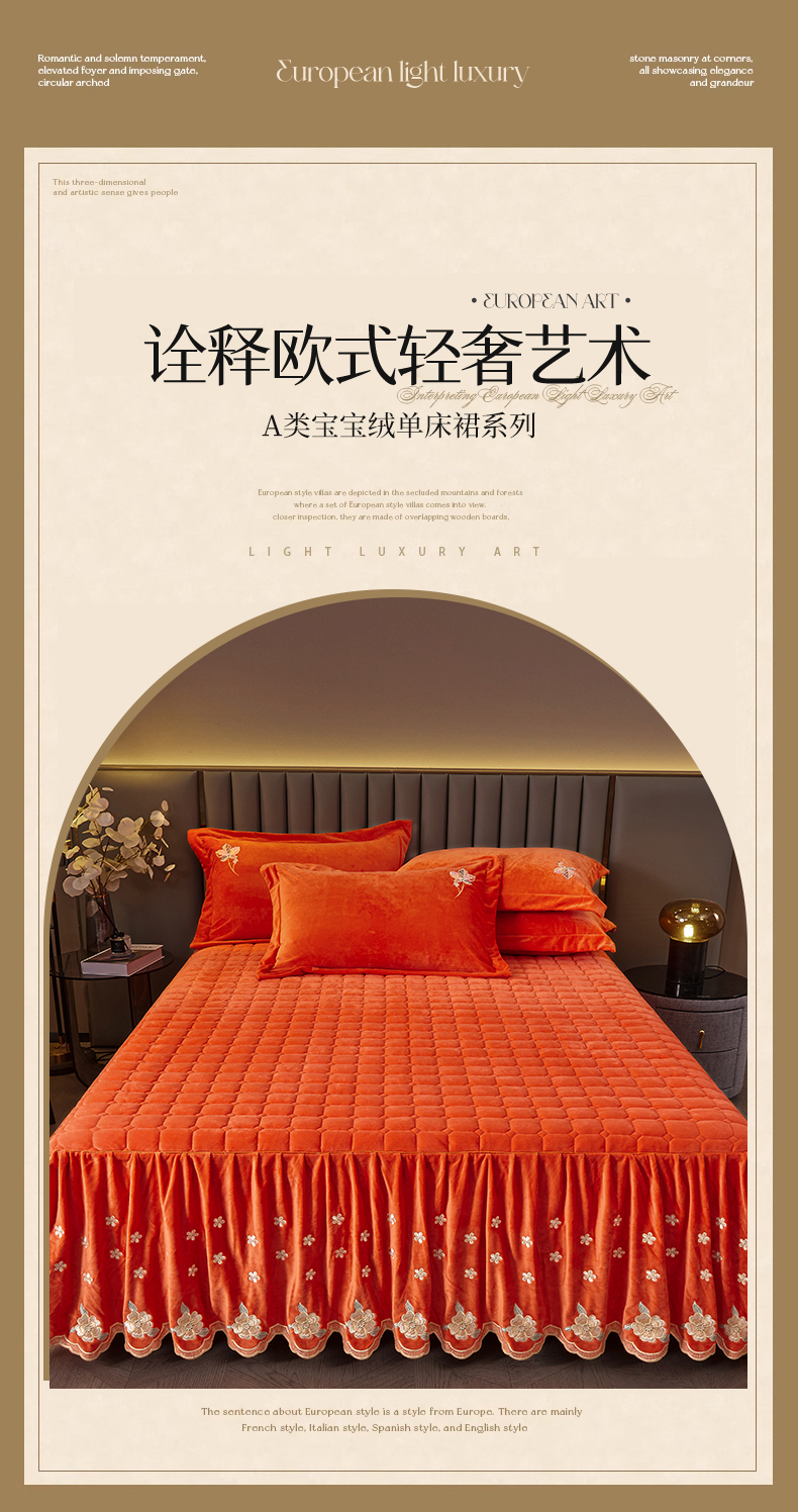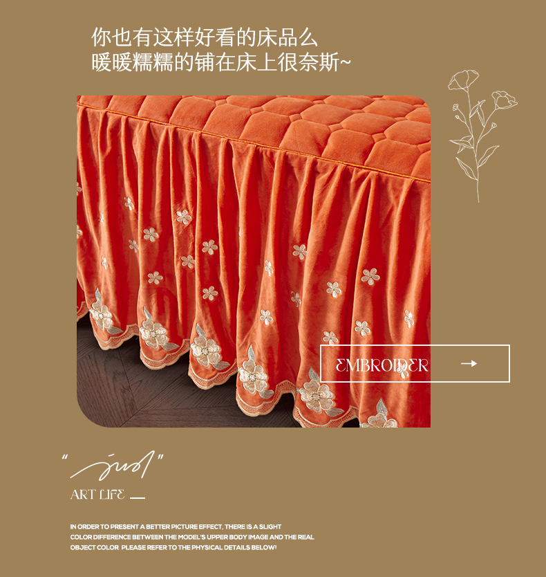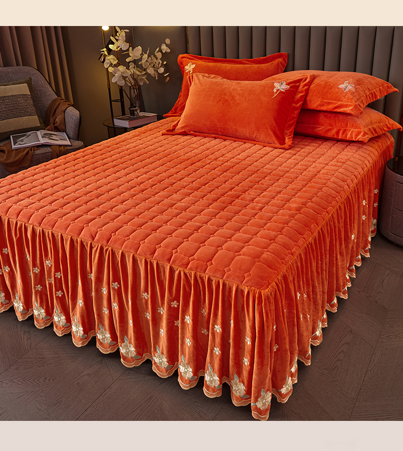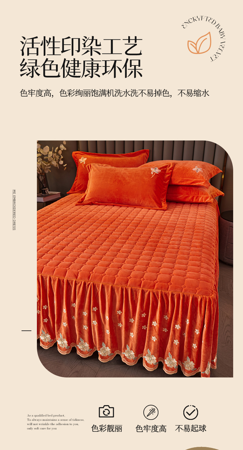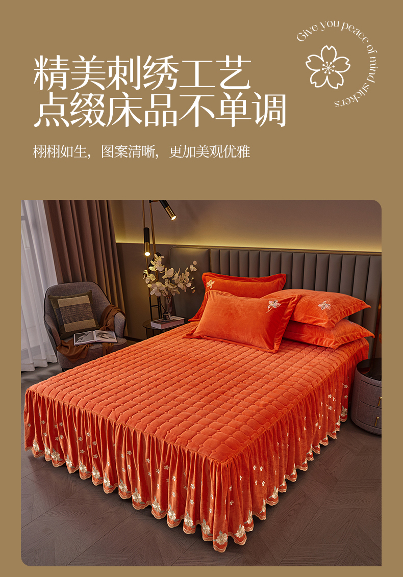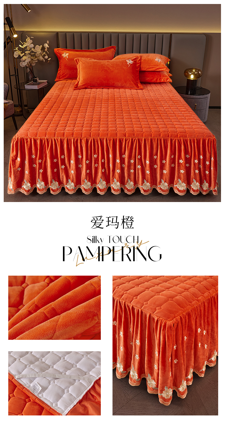 (总)恒爱 2022新款秋冬轻奢宝宝绒刺绣单床裙,爱玛橙,宾利蓝,豆沙红,橄榄绿,高级灰,酒红,梦想粉,浅灰蓝,温馨粉,喜庆红,香妃粉,香芋紫
