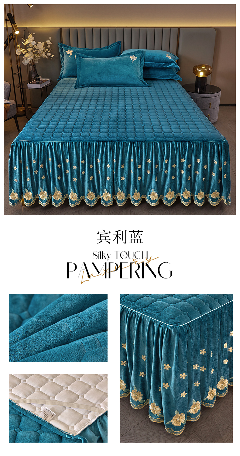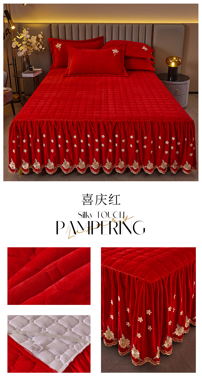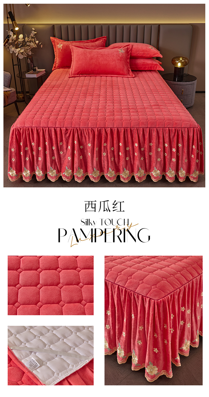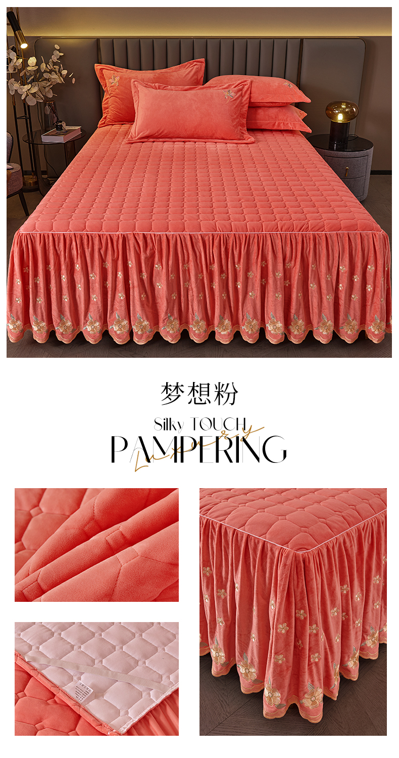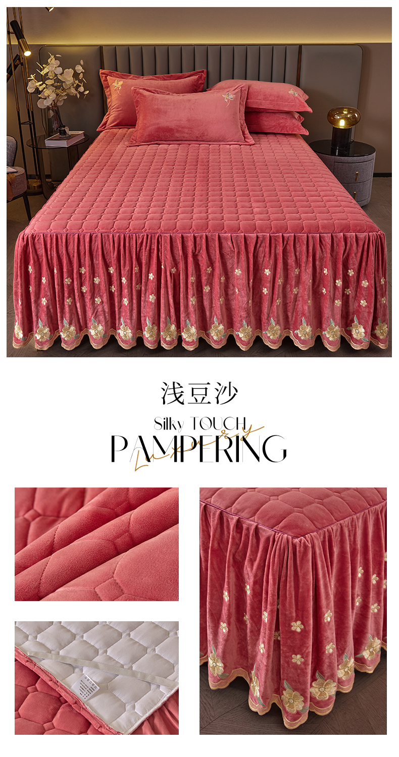 (总)恒爱 2022秋冬水晶绒翩翩花舞夹棉床裙四件套,大红色,豆沙红,橄榄绿,公主粉,桔色,咖啡色,孔雀绿,拉菲红,罗兰紫,玫红色,美人玉,米白色,米驼色,抹茶绿,浅灰色,紫色