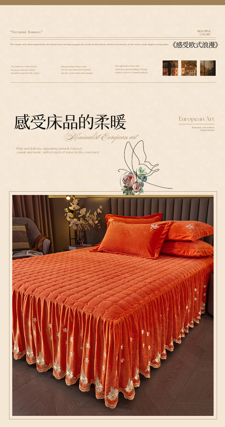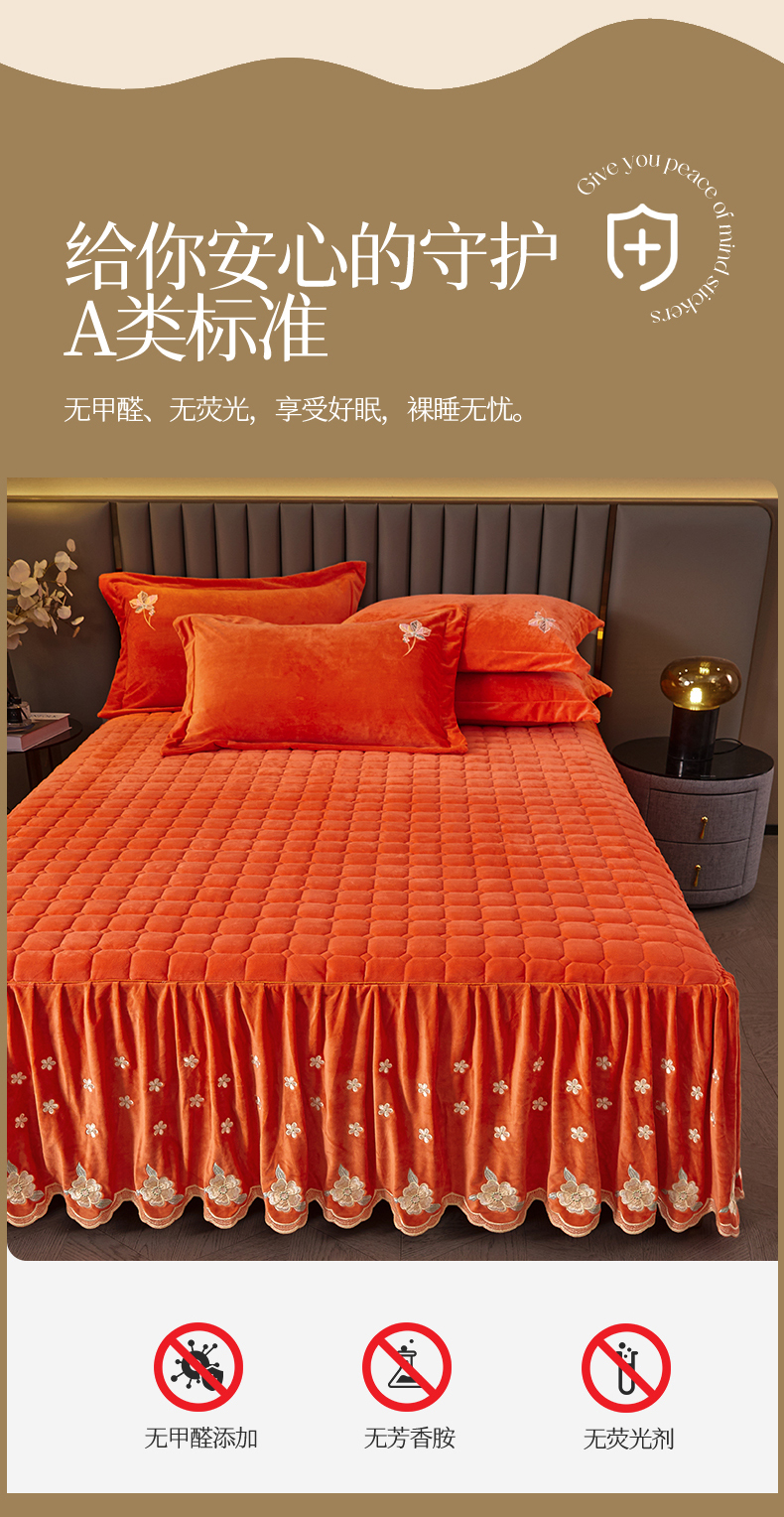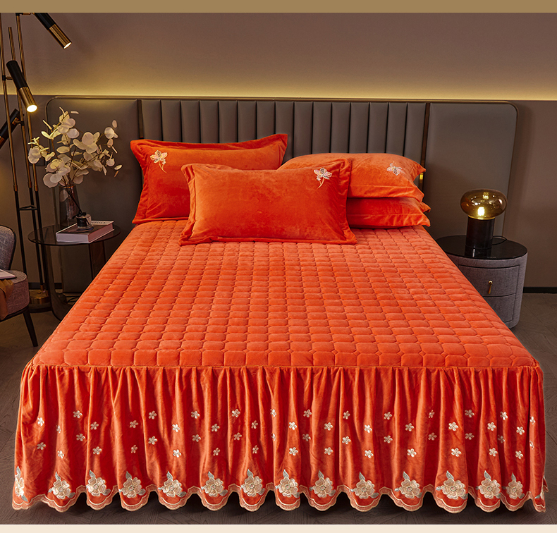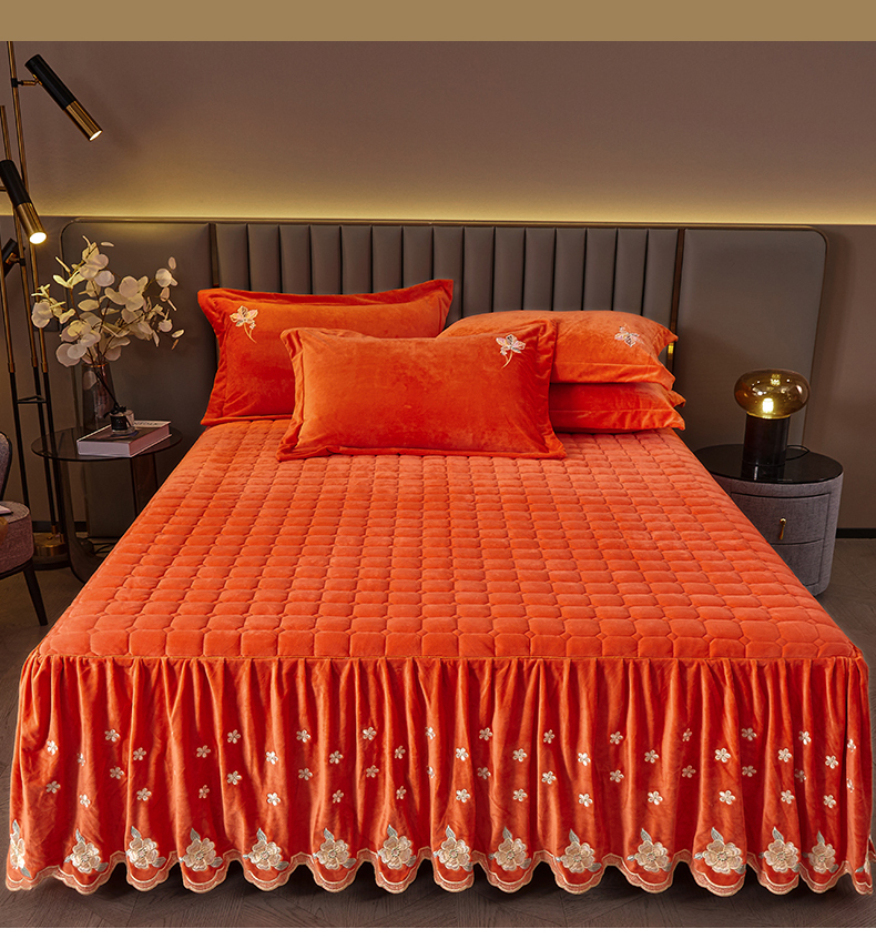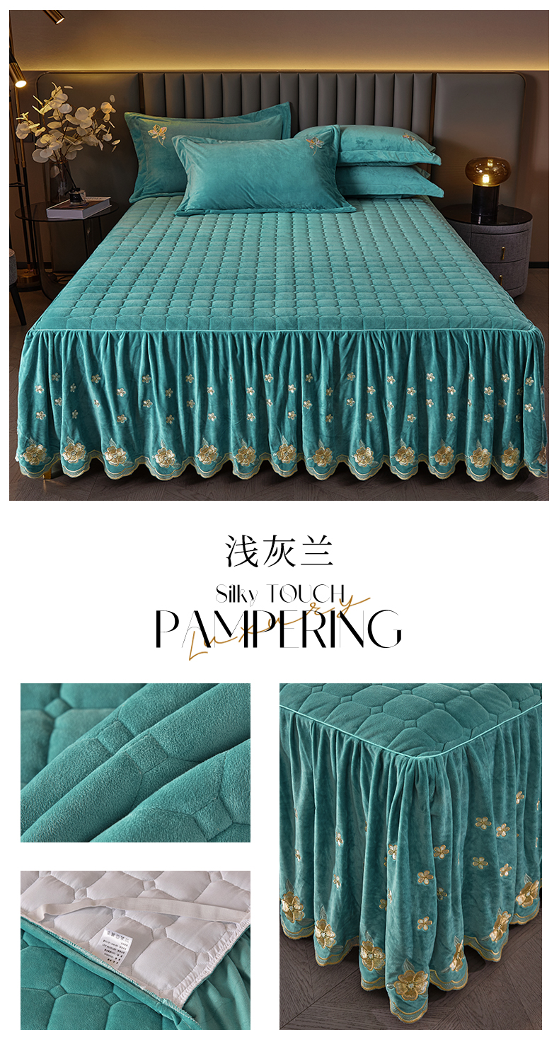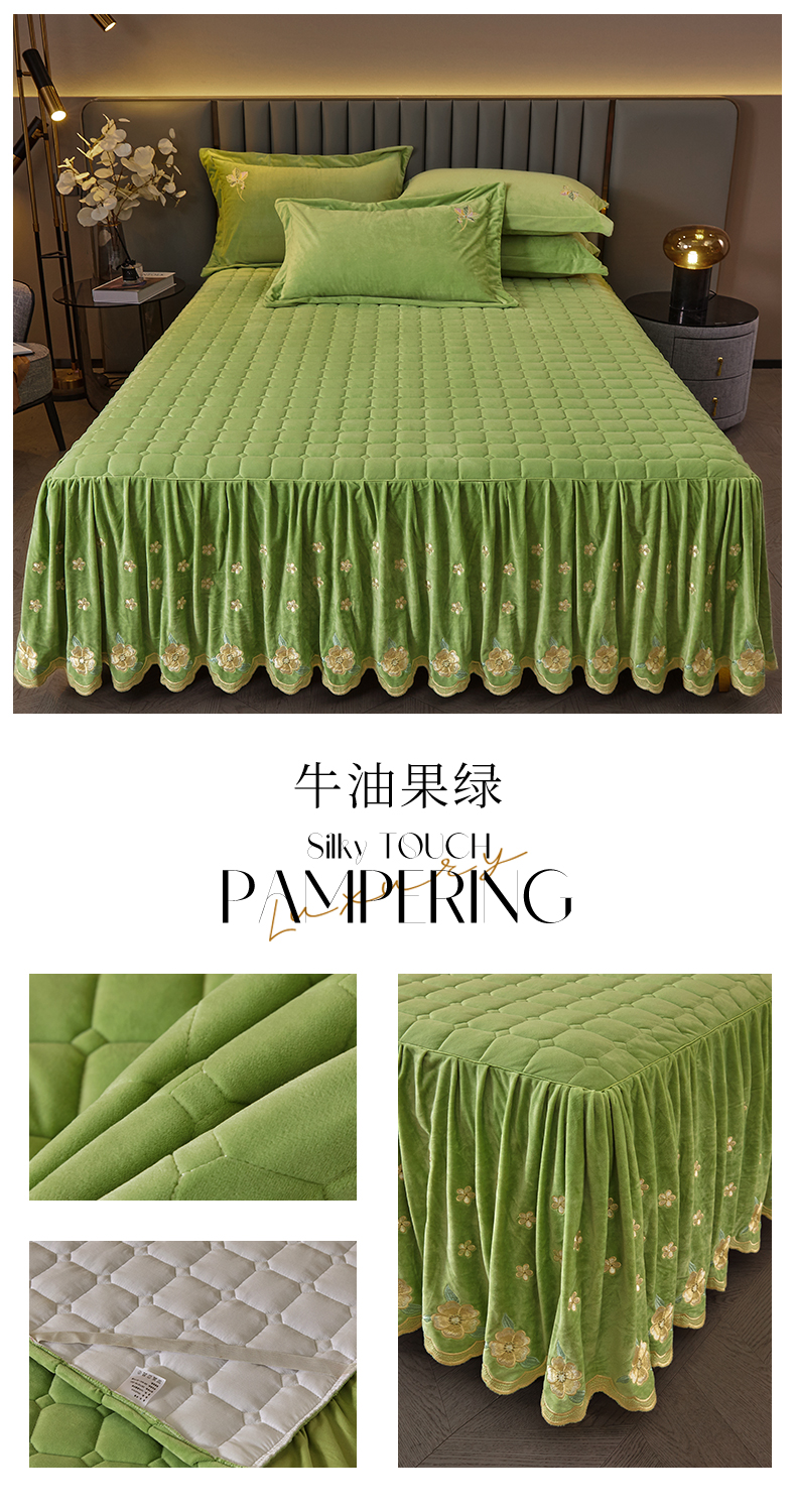 (总)恒爱 2022秋冬水晶绒翩翩花舞夹棉床裙四件套,大红色,豆沙红,橄榄绿,公主粉,桔色,咖啡色,孔雀绿,拉菲红,罗兰紫,玫红色,美人玉,米白色,米驼色,抹茶绿,浅灰色,紫色