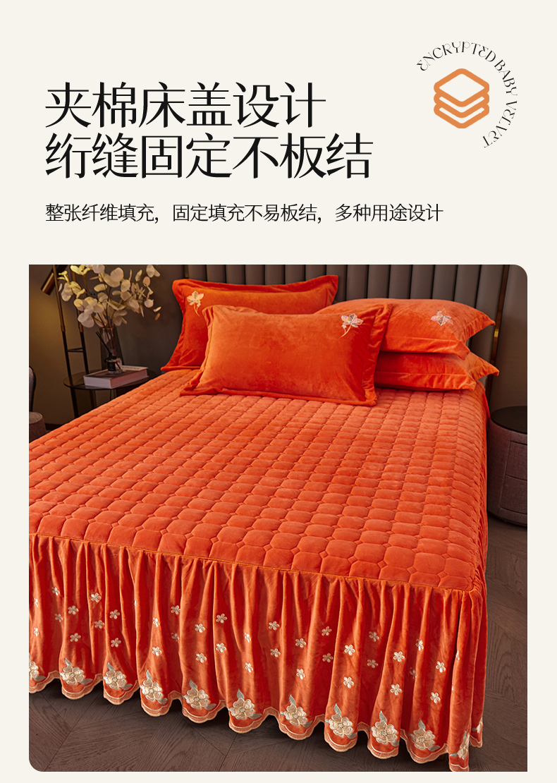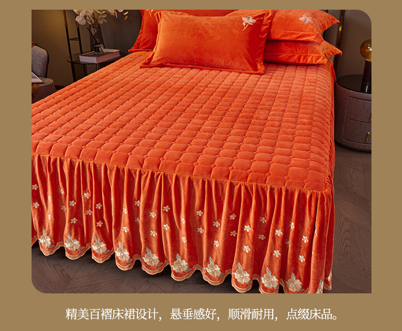 (总)恒爱 2022秋冬水晶绒翩翩花舞夹棉单床裙,大红色,豆沙红,橄榄绿,公主粉,桔色,咖啡色,孔雀绿,拉菲红,罗兰紫,玫红色,美人玉,米白色,米驼色,抹茶绿,浅灰色,紫色