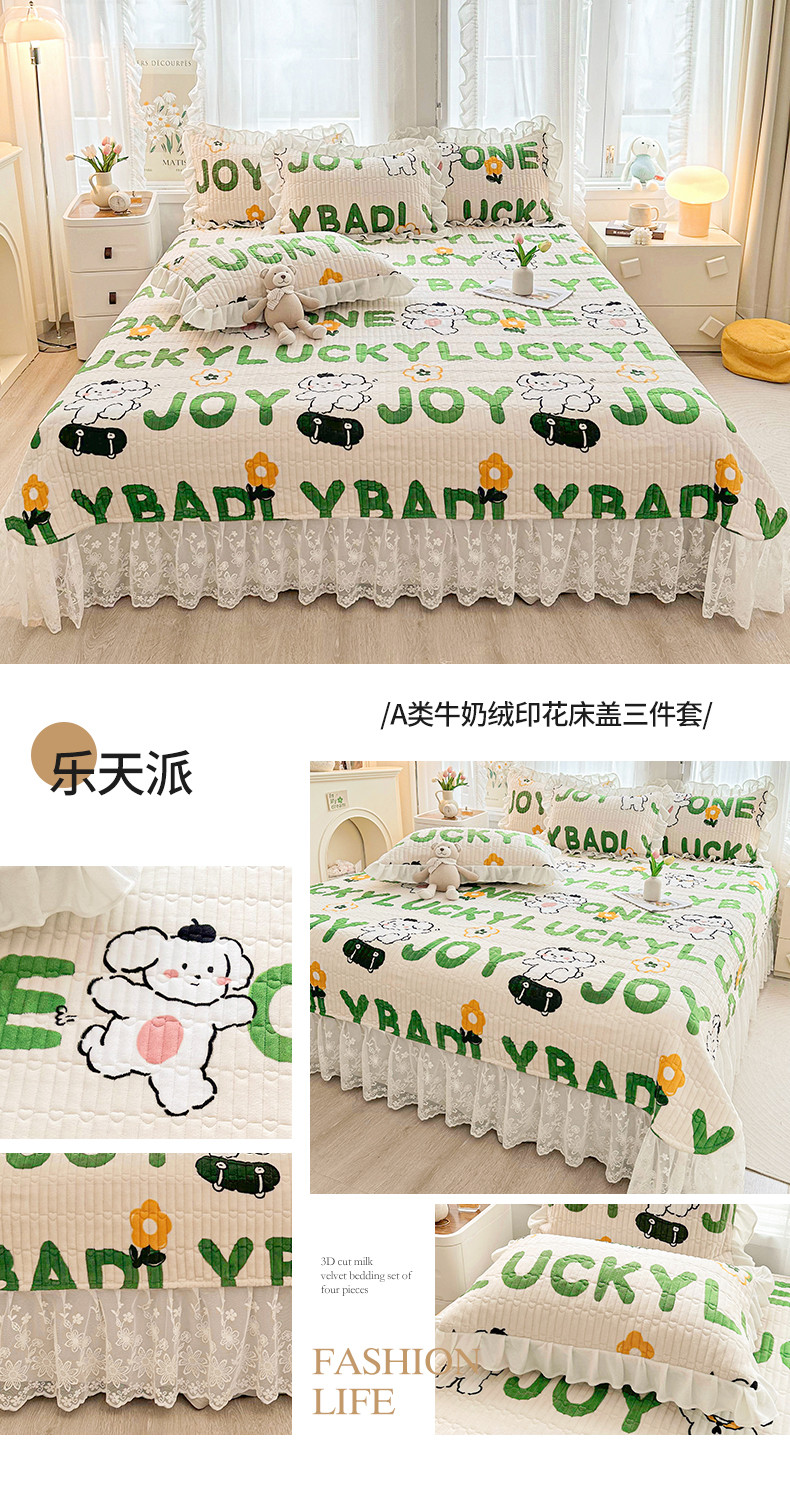 宜凡家纺 2023新款牛奶绒印花夹棉被套床盖三件套 乐天派