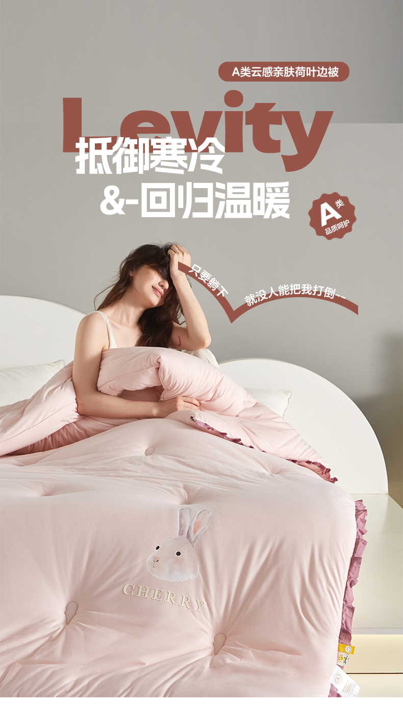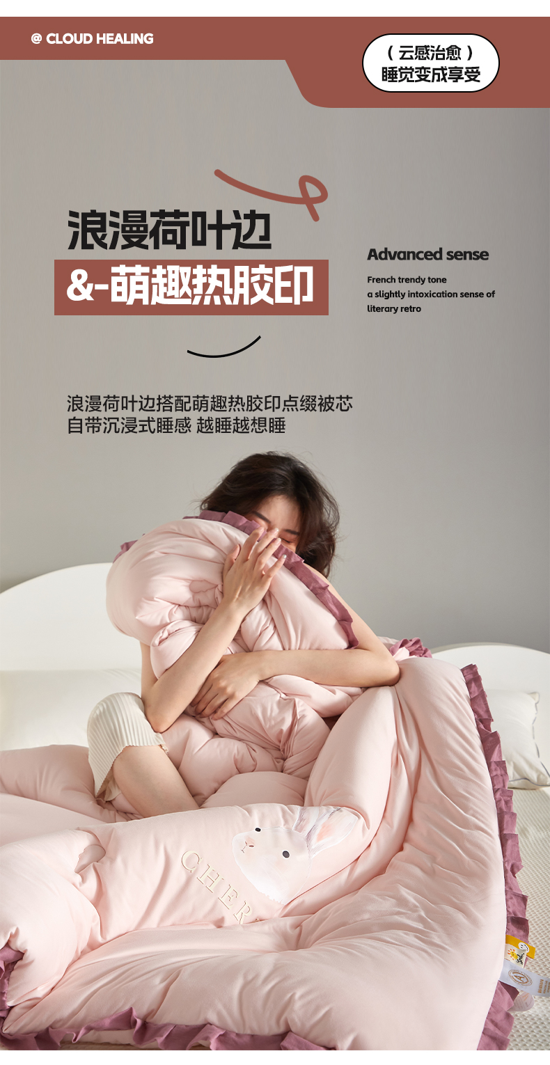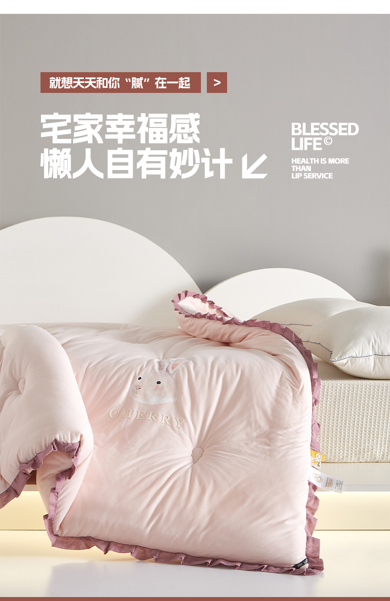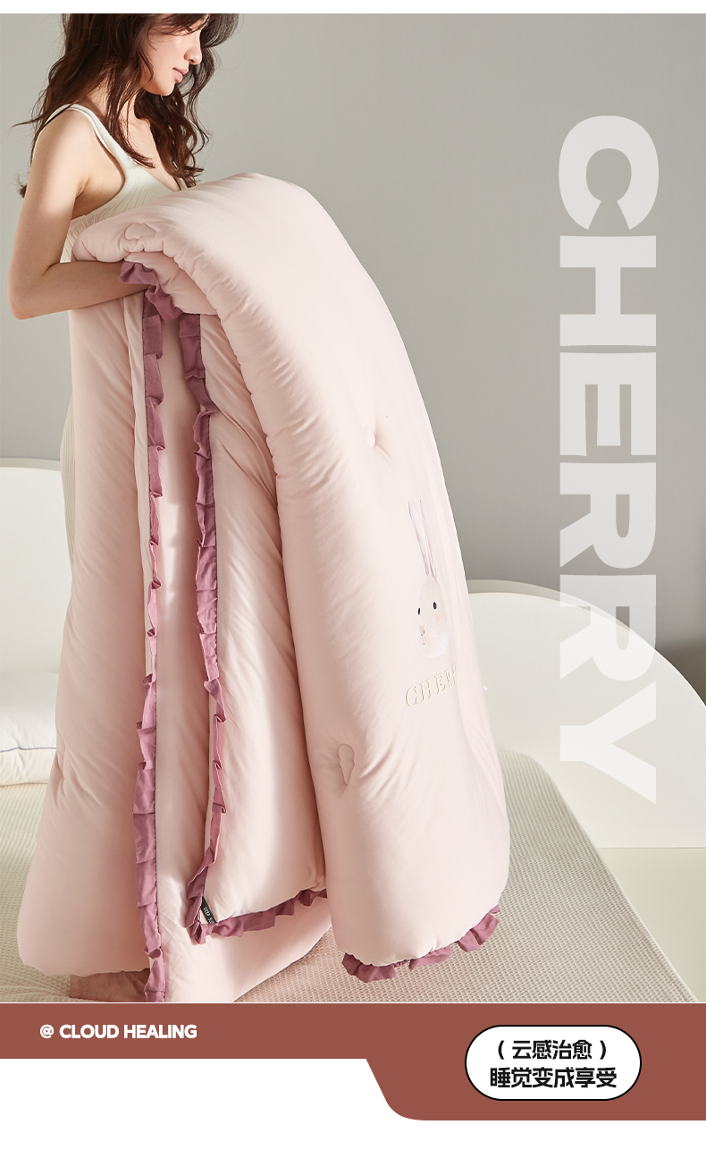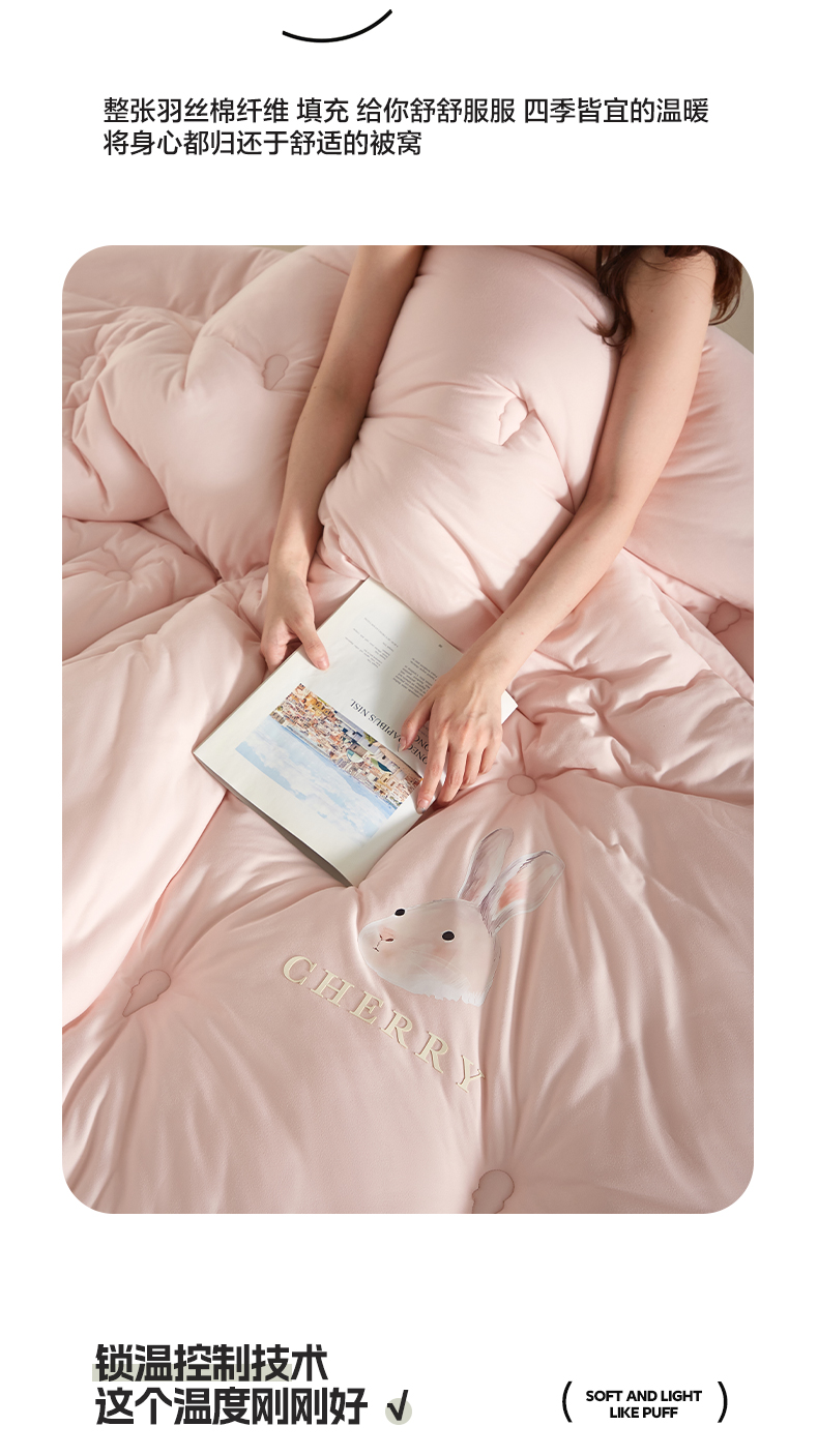 商品名称:莱福仕家纺 2023新款A类云感亲肤被 茶蕊兔(豆蔻粉)