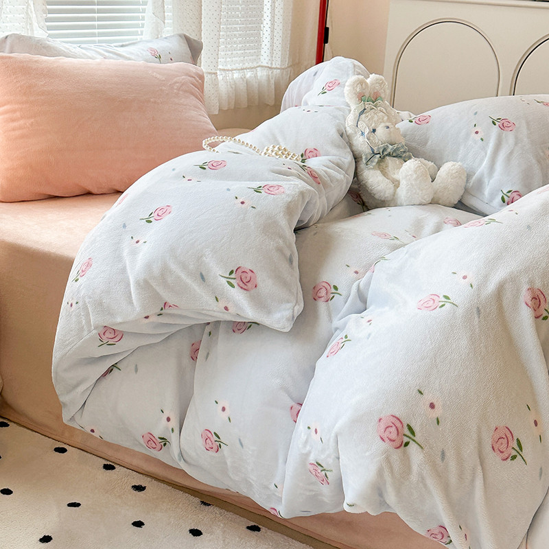 商品名称:昔可 2023新款柔软舒适混搭牛奶绒四件套 蓝色甜美玫瑰