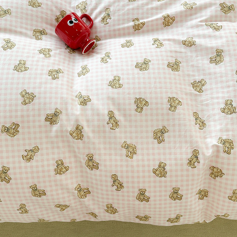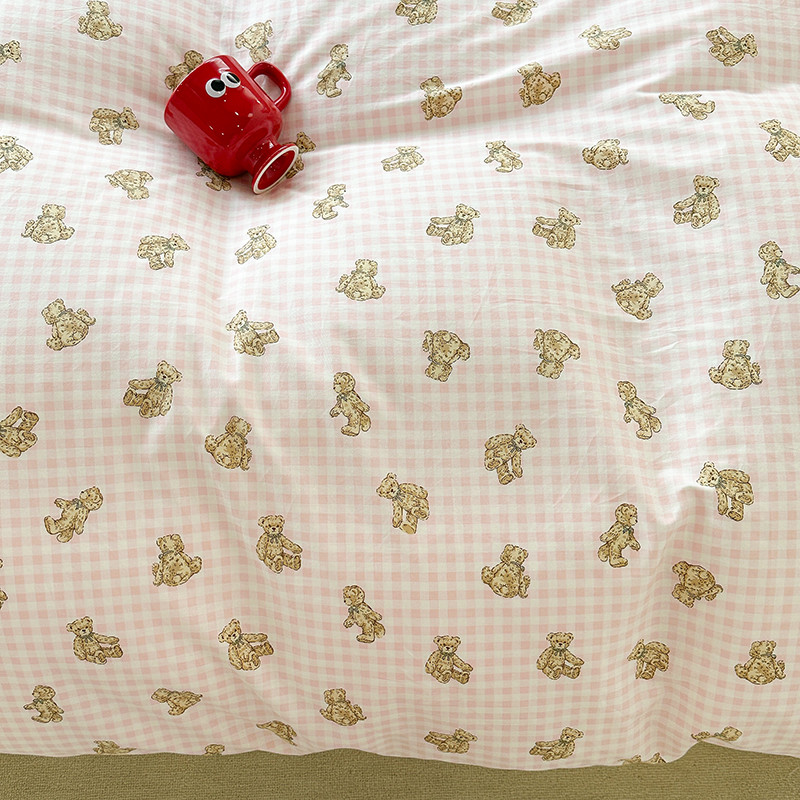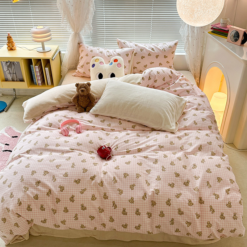 商品名称:昔可 2023新款亲肤柔软棉加绒四件套 粉格小熊