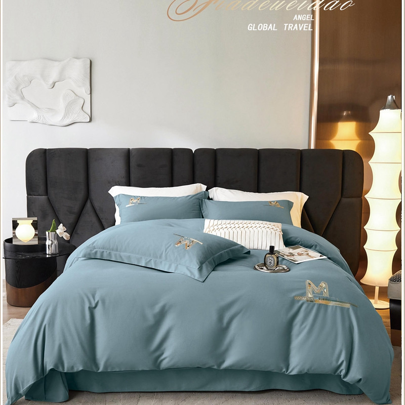 (总)惠居家 2023新款 120支长绒棉利亚款四件套,宝石蓝,橙色,豆沙,高级灰,卡宴蓝,温馨紫