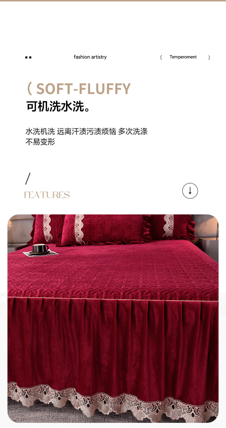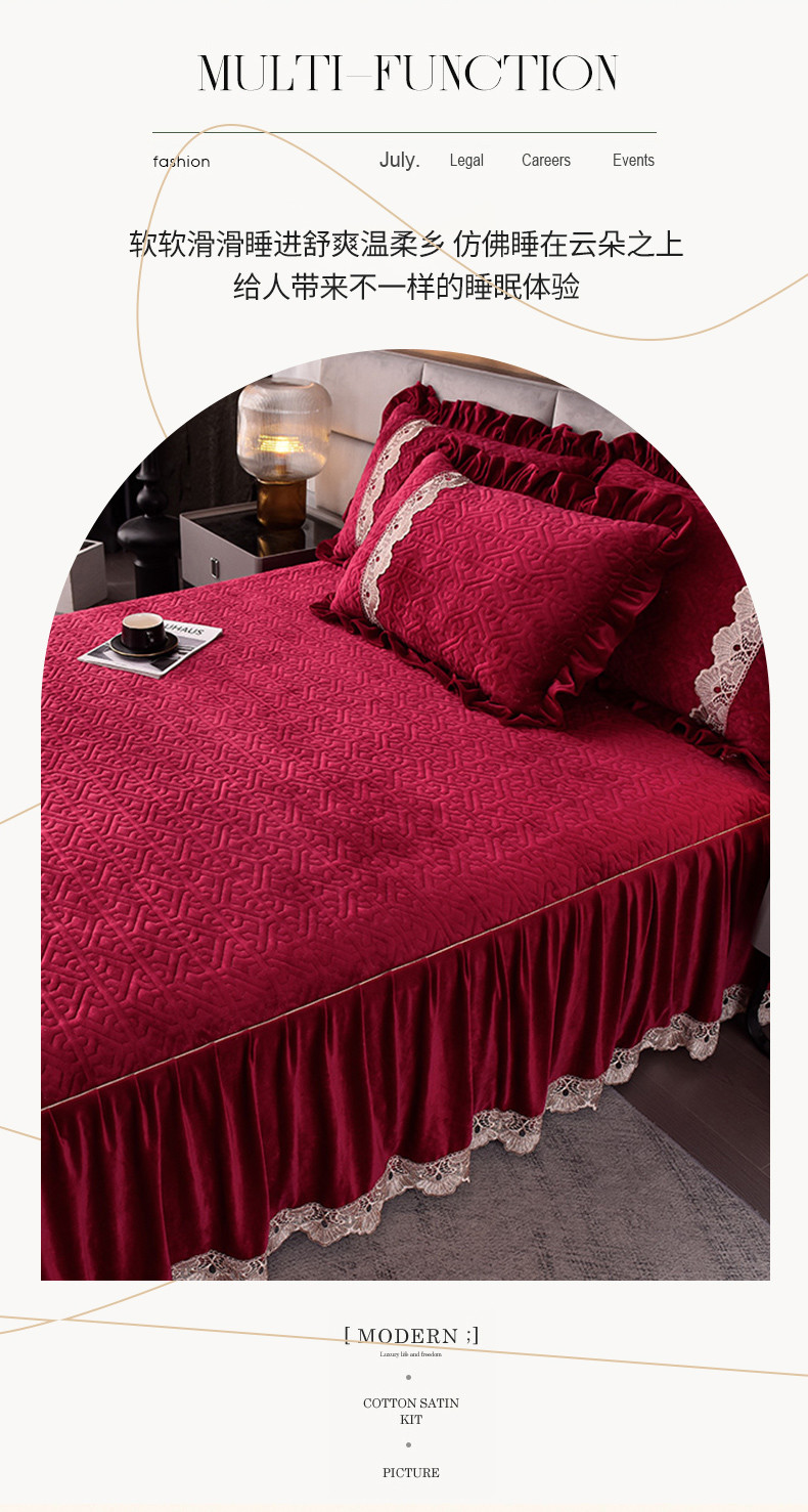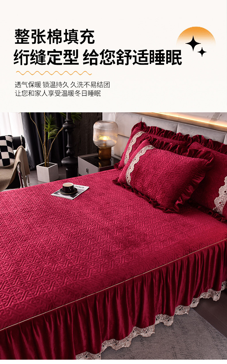 商品名称:忘忧草 2023新款安娜系列婴儿绒夹棉浪漫花边床裙 安娜-亮酒红