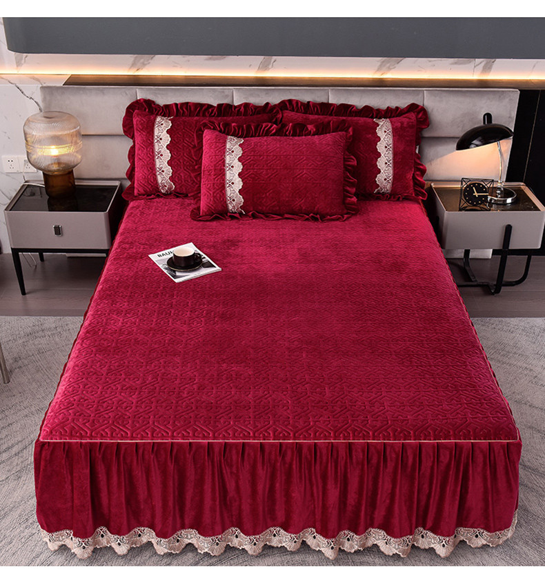 忘忧草 2023新款安娜系列婴儿绒夹棉浪漫花边床裙 安娜-亮酒红
