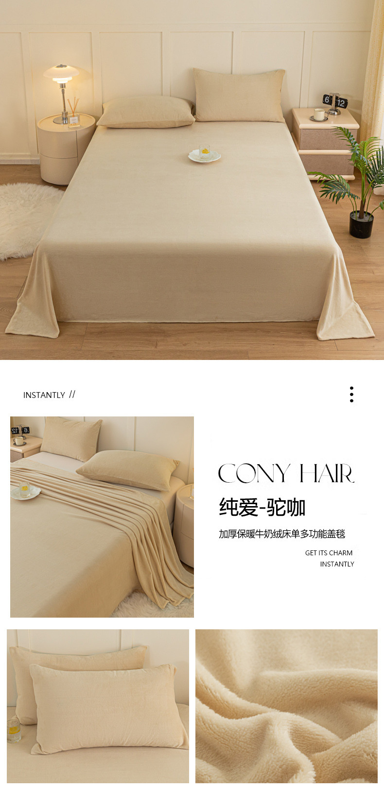(总)慕澄家纺 2023新款纯色牛奶绒加厚保暖多功能床单盖毯