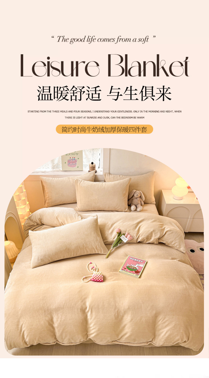 当前位置: 91家纺网 > 商品网购 > 床品套件 > 四件套 > 牛奶绒四件套 > 慕澄家纺 2023新款简约牛奶绒加厚保暖四件套-纯爱 纯爱-驼咖