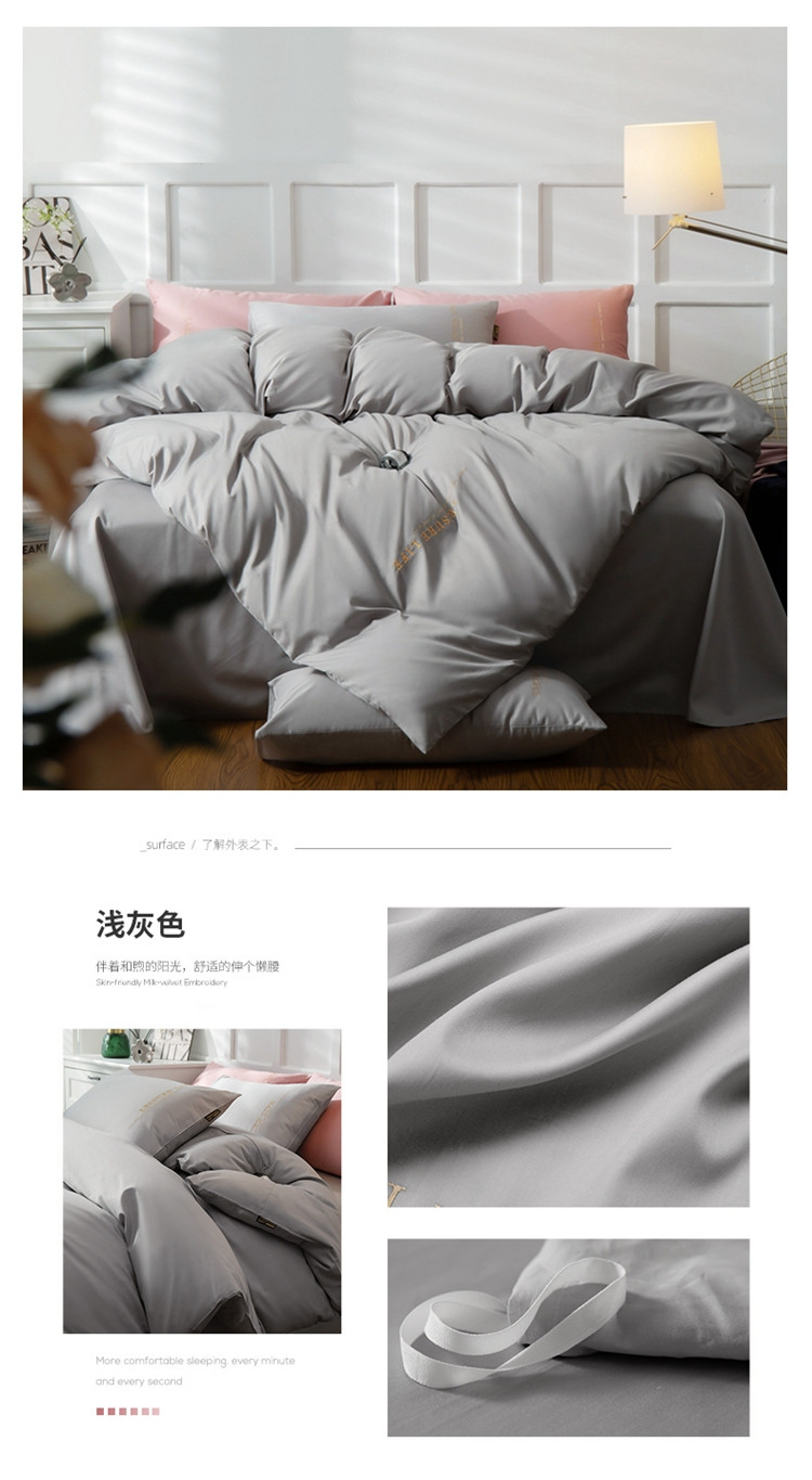 商品名称:莱阁亿 2023新款长绒棉纯色绣花四件套 浅灰色