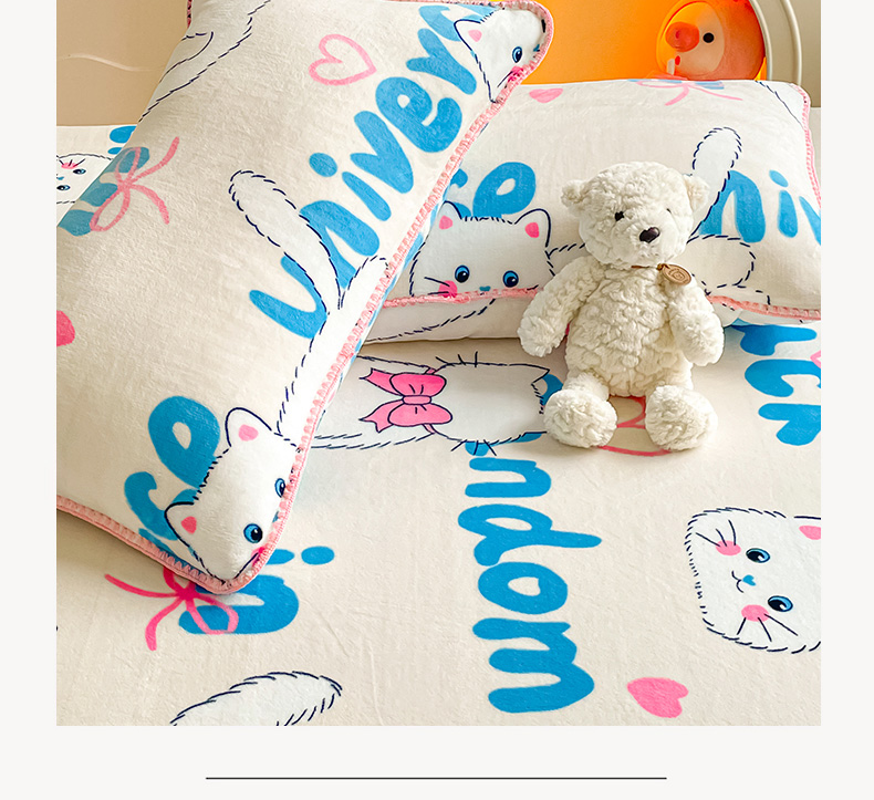 商品名称:安哆啦家纺 2024新款高克重牛奶绒印花单床笠 英文猫咪