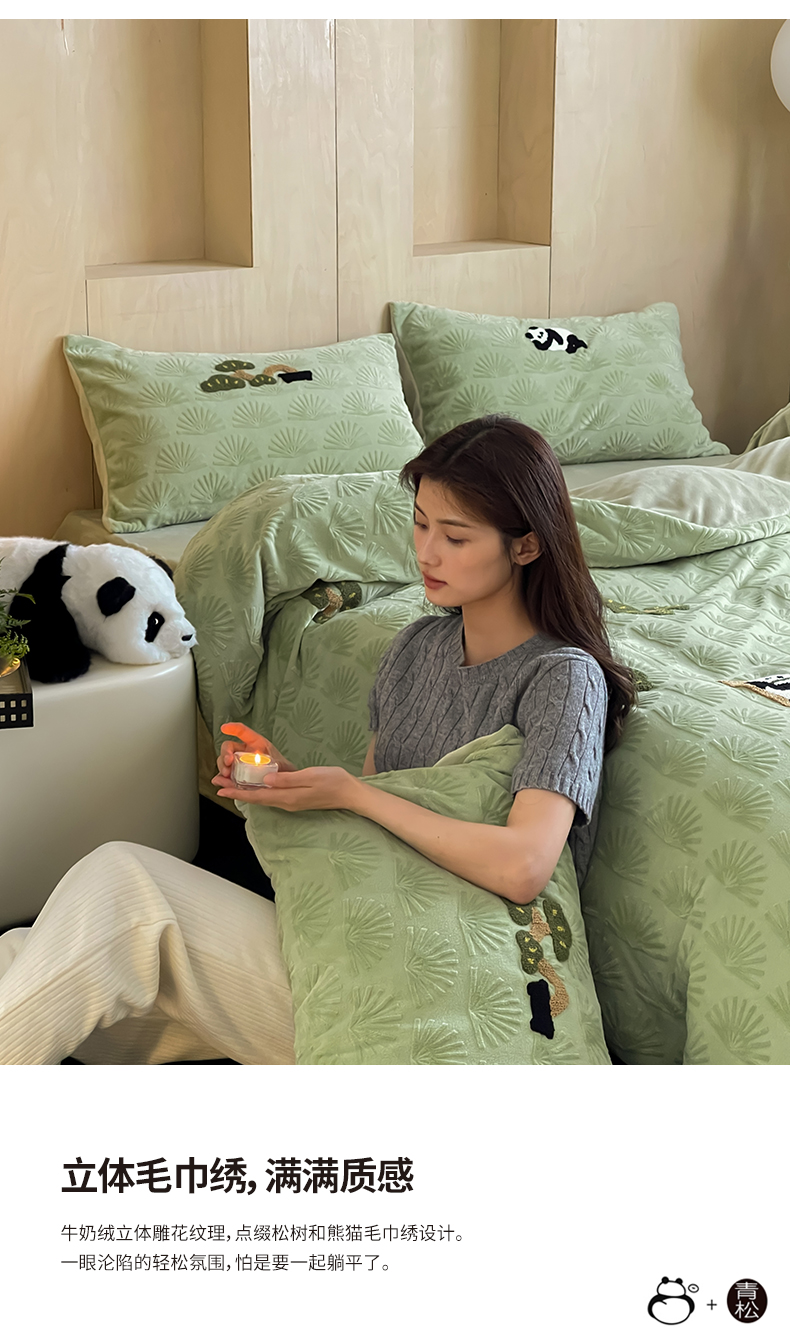 当前位置: 91家纺网 > 商品网购 > 床品套件 > 四件套 > 牛奶绒四件套 > 风向标家纺 2023新款A类立体牛奶绒四件套-毛巾绣放青松系列 风格二【ins手机图】 放青松-翠松