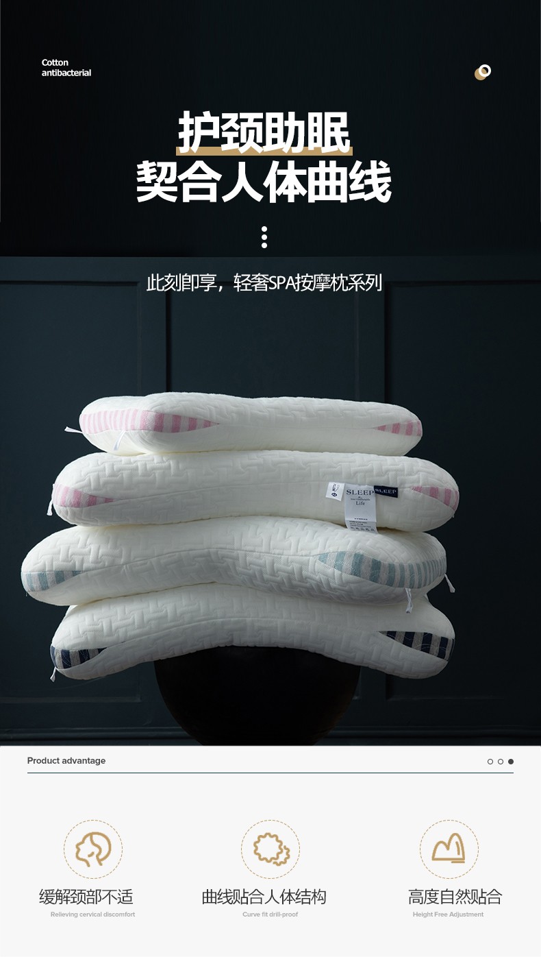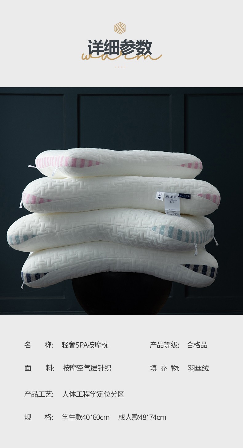 2023新款 SPA按摩护颈枕头 轻奢按摩学生低平水洗枕芯