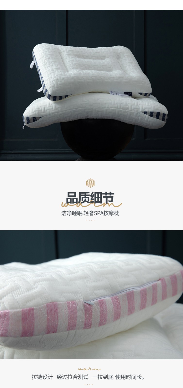 商品名称:2023新款 SPA按摩护颈枕头 轻奢按摩学生低平水洗枕芯