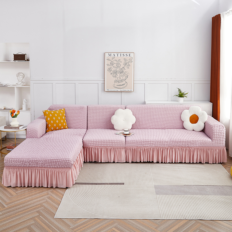 丝绮鹿 2023新款爆米花裙边贵妃沙发套 粉色
