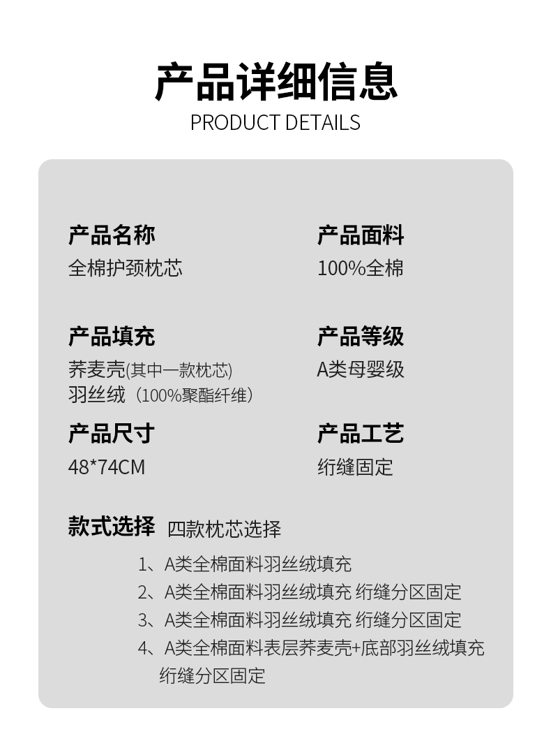 商品名称:(总)织布人 2023新款枕芯A类60支全棉抗菌至简本色舒睡枕护颈羽丝绒荞麦枕头