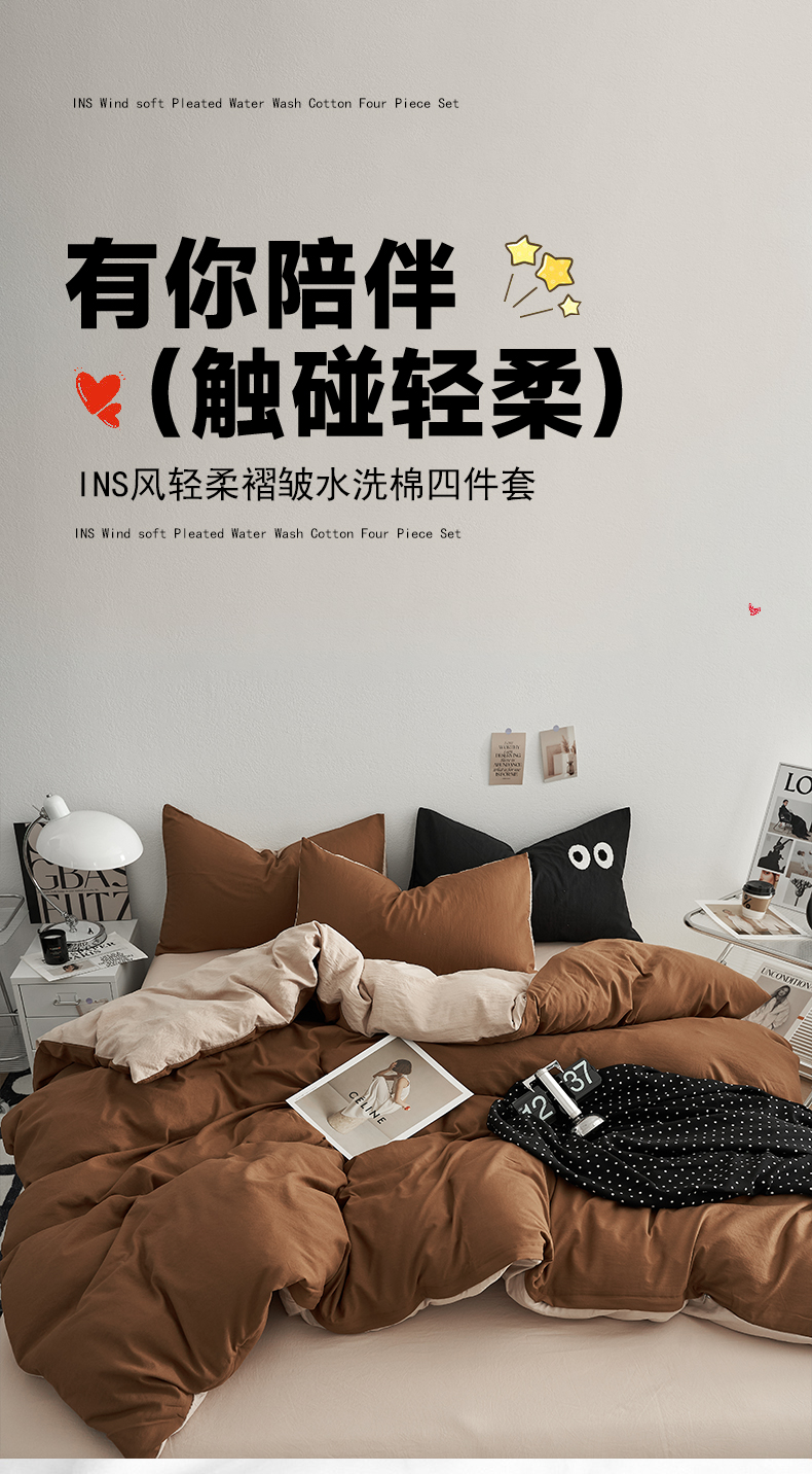 当前位置: 91家纺网 > 商品网购 > 床品套件 > 四件套 > 水洗棉四件套 > 卡迪熊家纺 2024新款ins风超柔褶皱亲肤磨毛水洗m四件套双拼系列 糖卡
