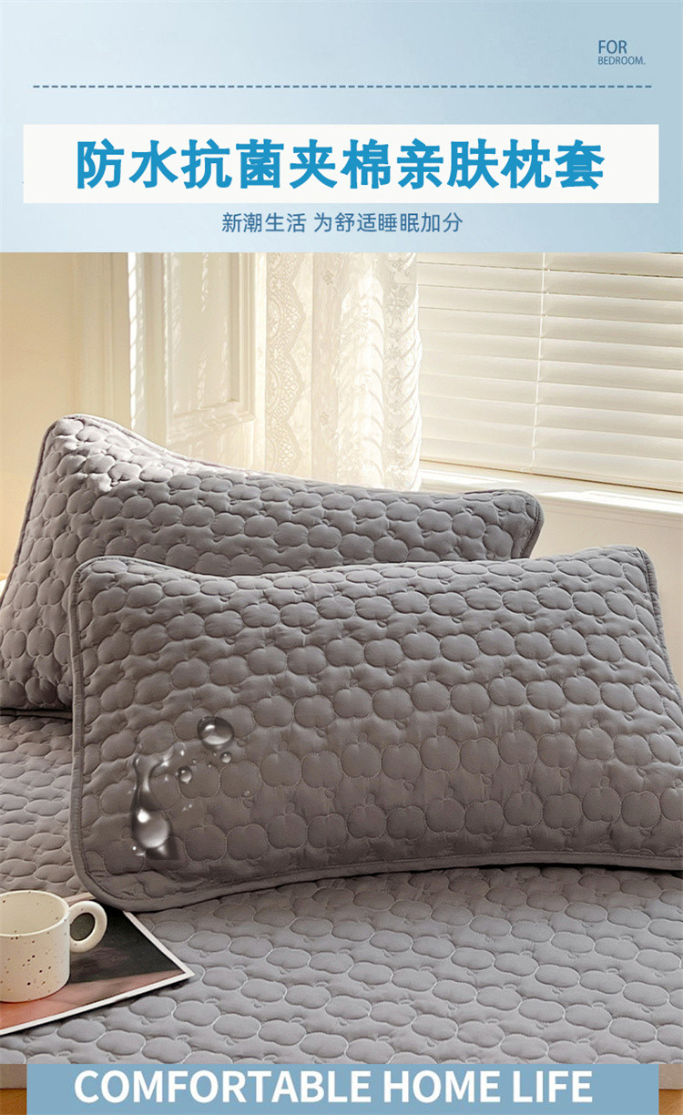商品名称:新款防水抗菌夹棉枕套防口水头油枕芯套 苹果款-深灰