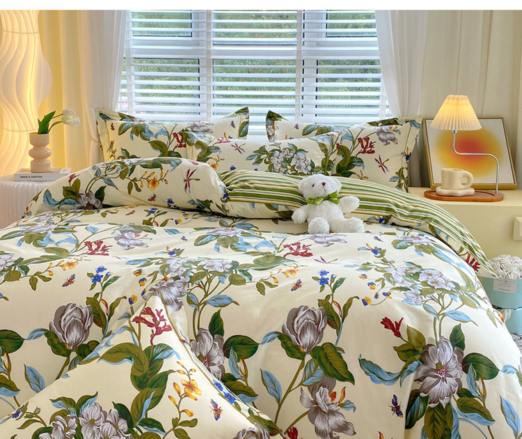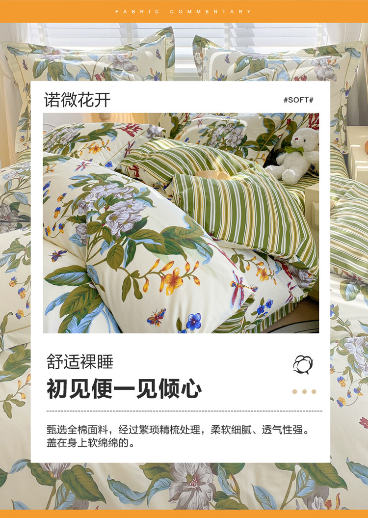 (总)星期三 2025年4月新款铂金全棉纯棉13372四件套 加微信有会员价,橙日幽香,花的旅途,花几度-绿,花佳境-咖,花枝草蔓,柔纱花影,棠影寻-粉,小雨录-紫,星际漫游