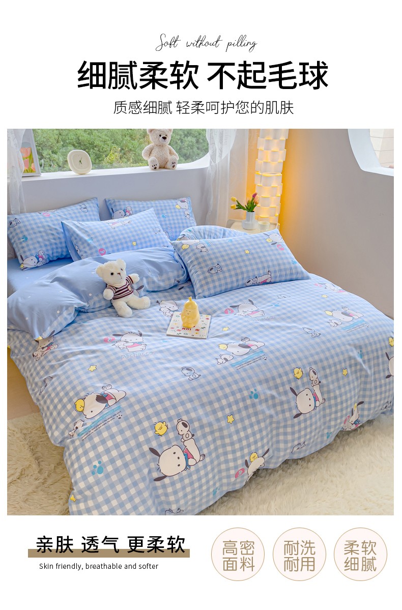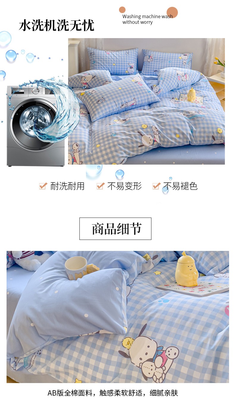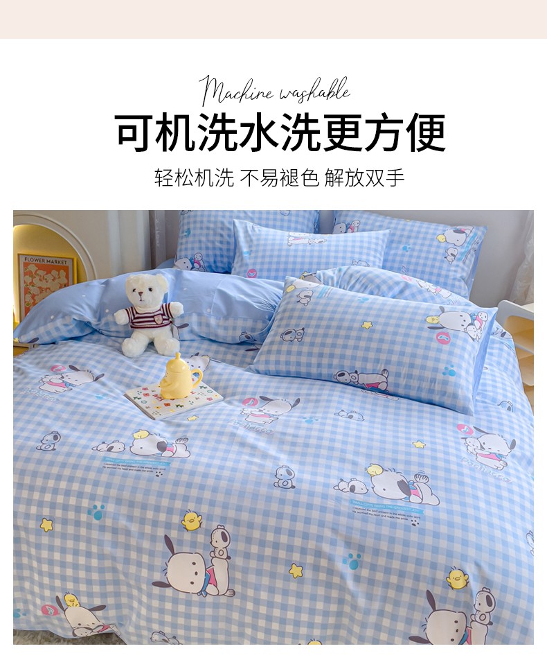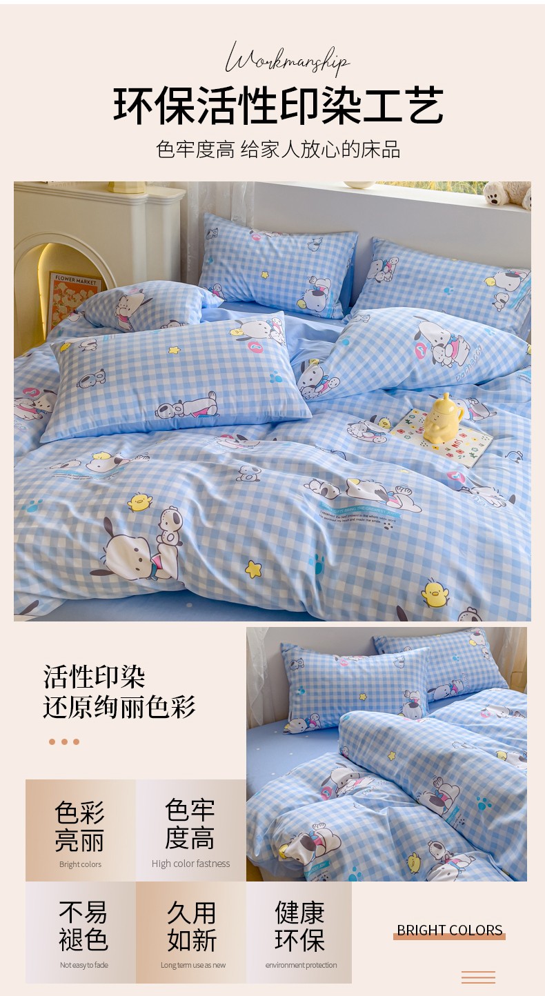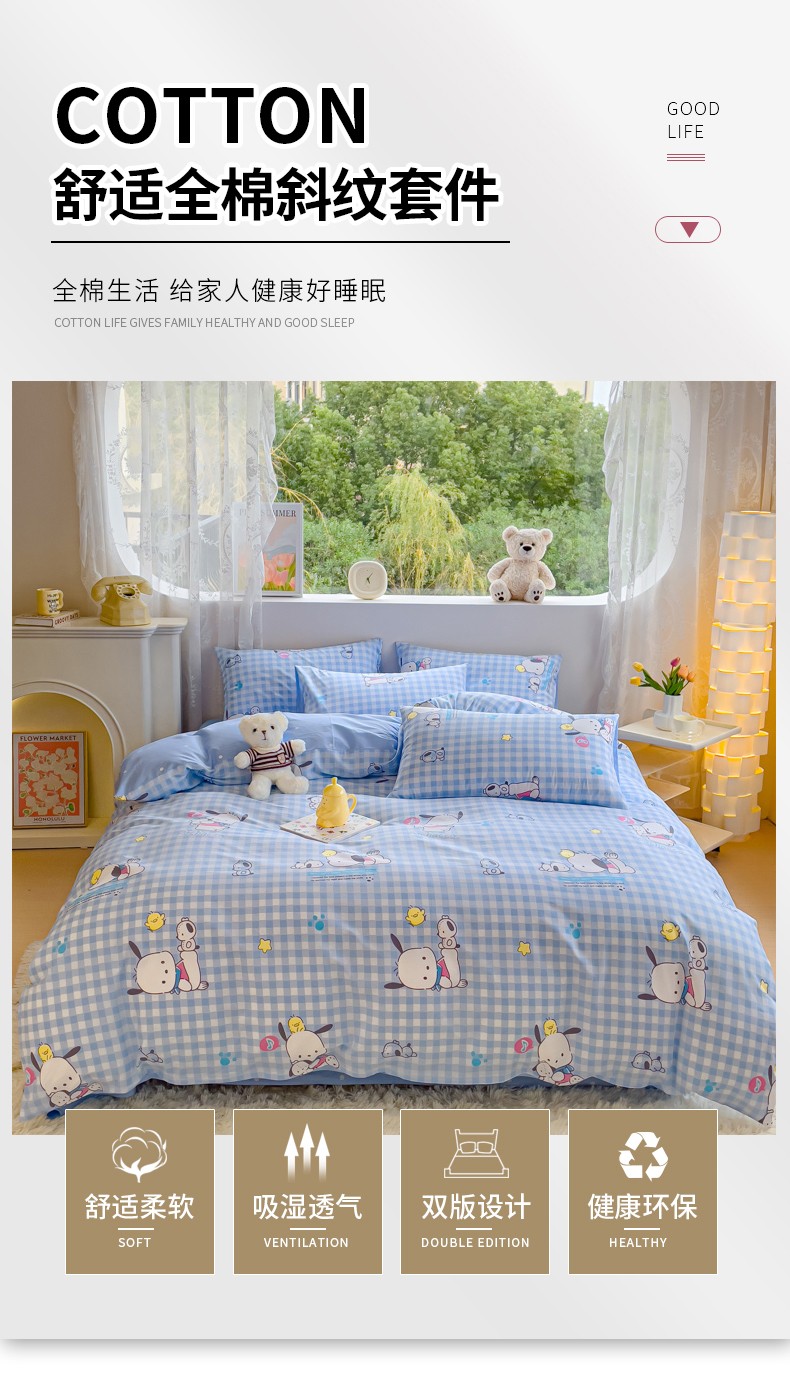 当前位置: 91家纺网 > 商品网购 > 床品套件 > 四件套 > 全棉普通四件套 > 金丝鸟家纺 2023新款全棉印花可爱卡通帕恰狗四件套 蓝格帕恰狗