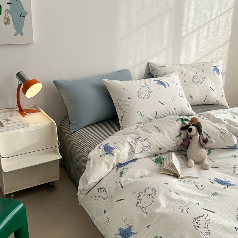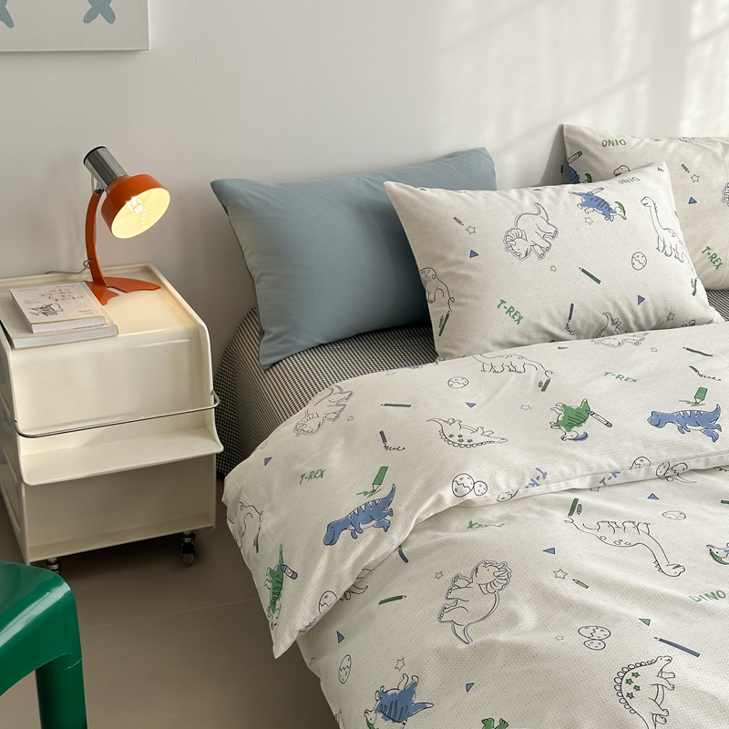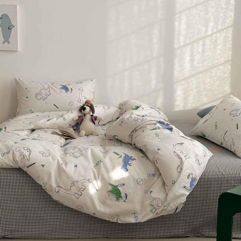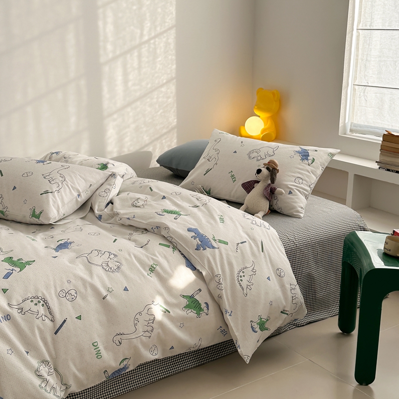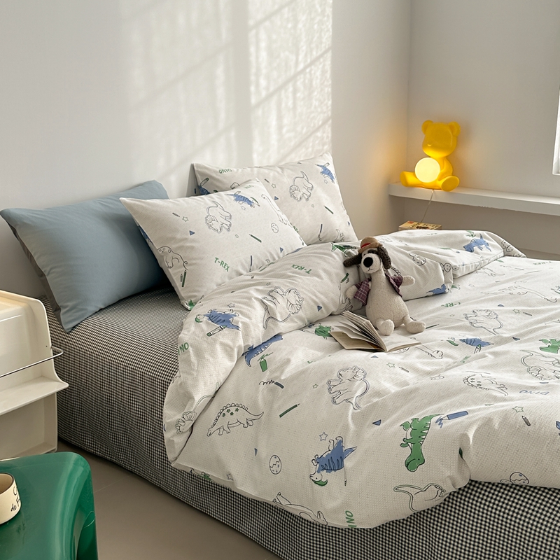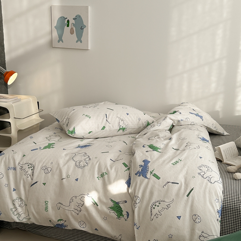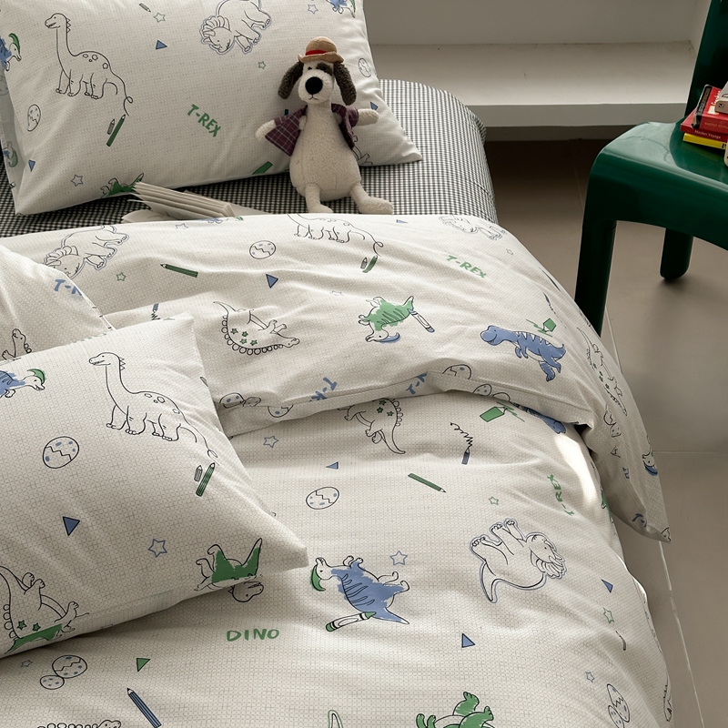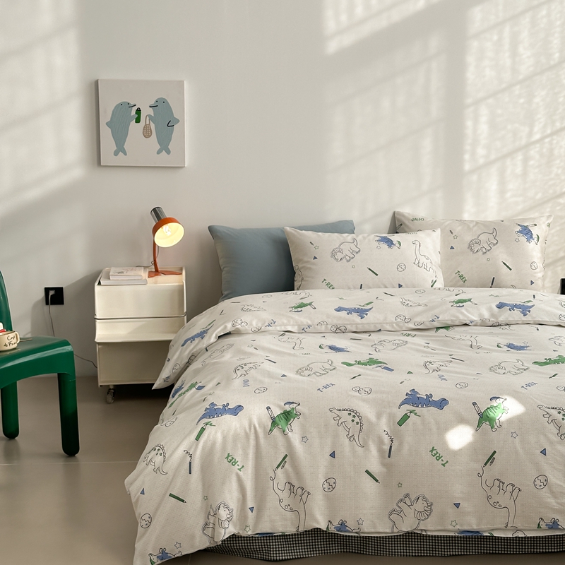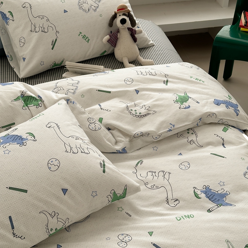 当前位置: 91家纺网 > 商品网购 > 床品套件 > 四件套 > 全棉普通四件套 > 棉眠 2024春季新款40支13070全棉卡通四件套 恐龙