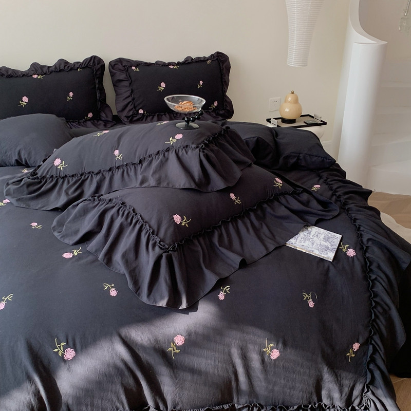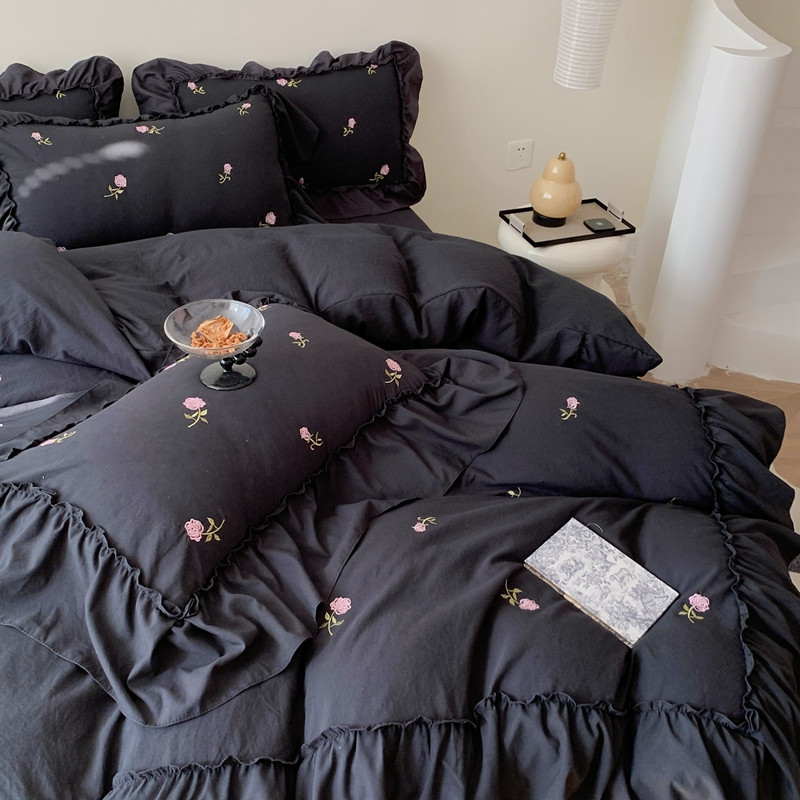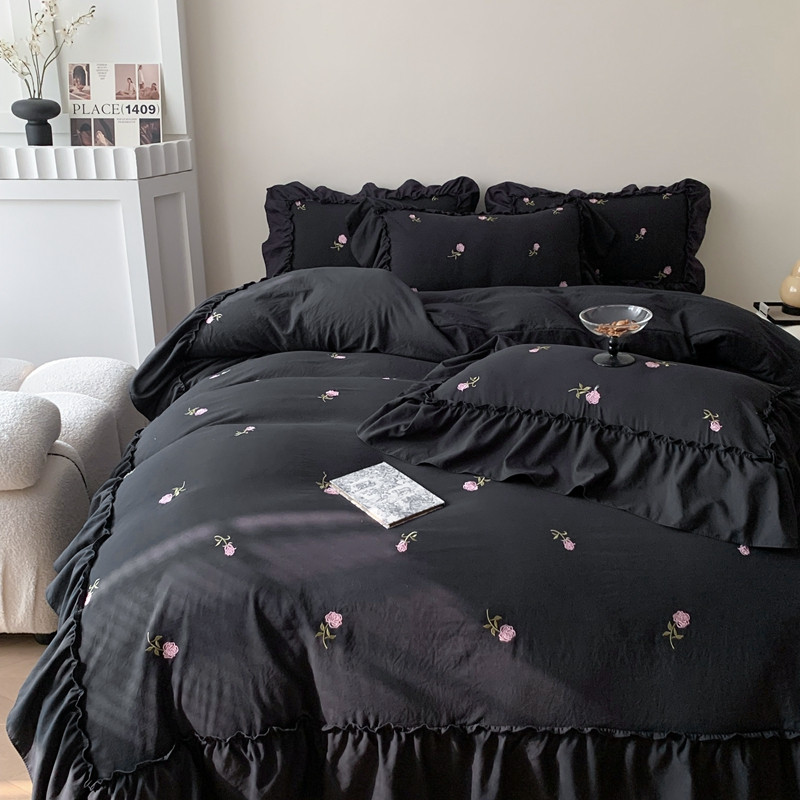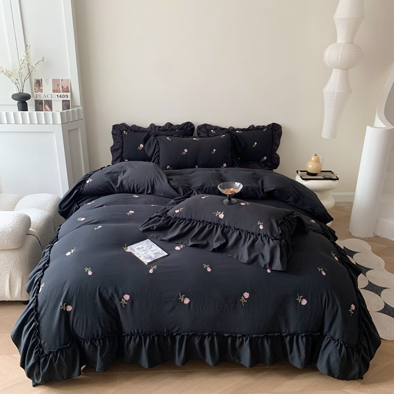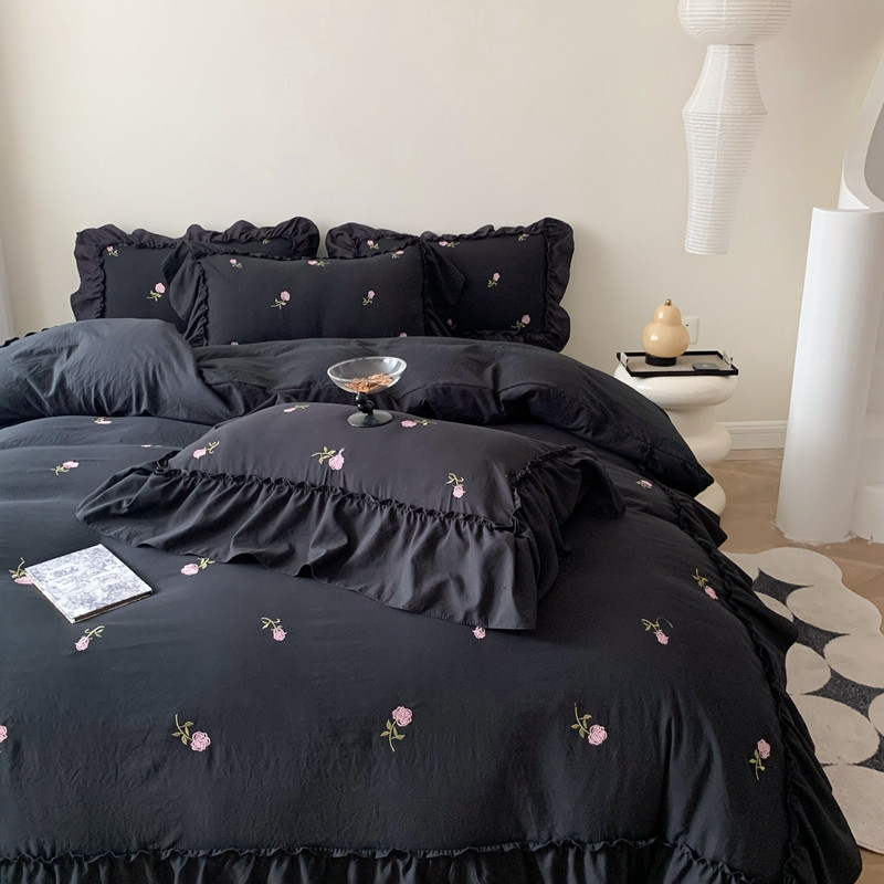 当前位置: 91家纺网 > 商品网购 > 床品套件 > 四件套 > 水洗棉四件套 > 你好美丽 2025新款水洗棉满版刺绣大宽花边款四件套-花季 花季黑满版