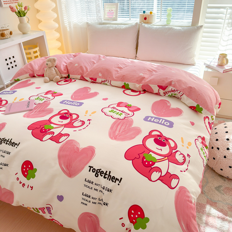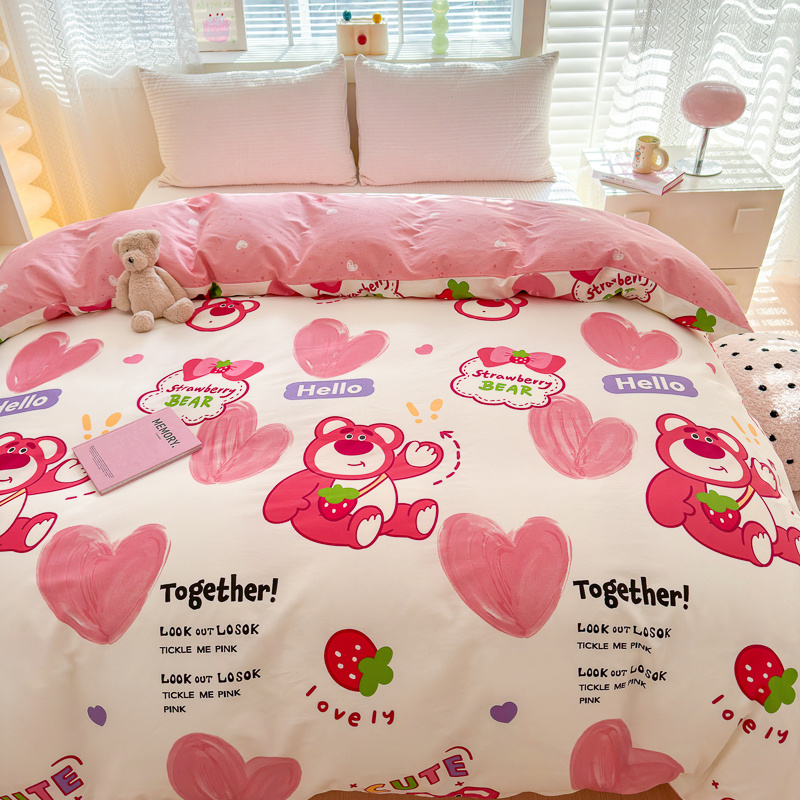清雅福 2024新款全棉13372小清新单被套系列第三季 爱心草莓熊