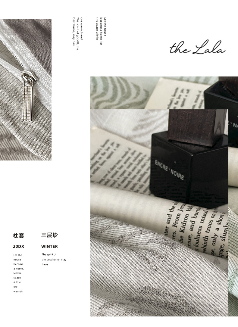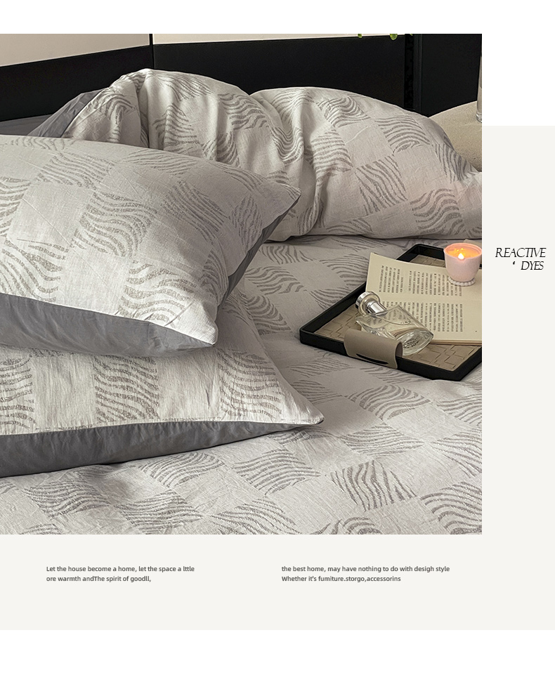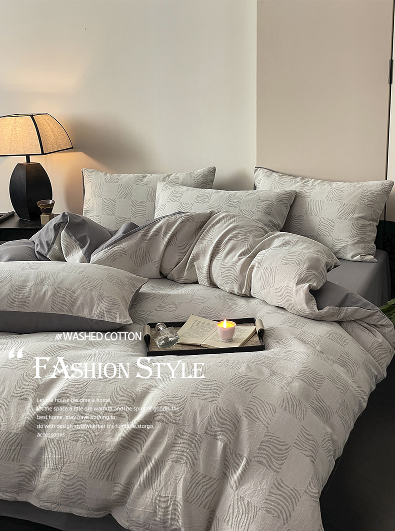 商品名称:ab家纺 2024新款全棉三层纱提花四件套系列-方格 方格灰
