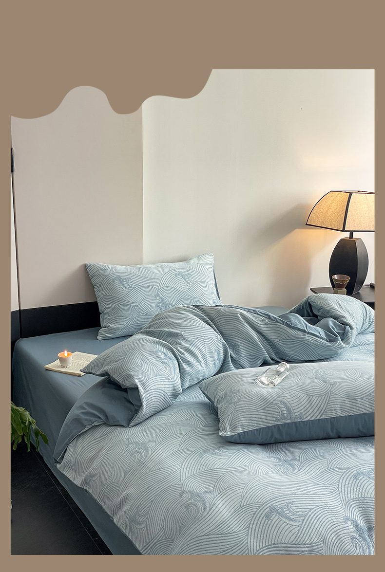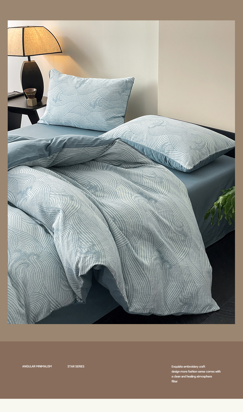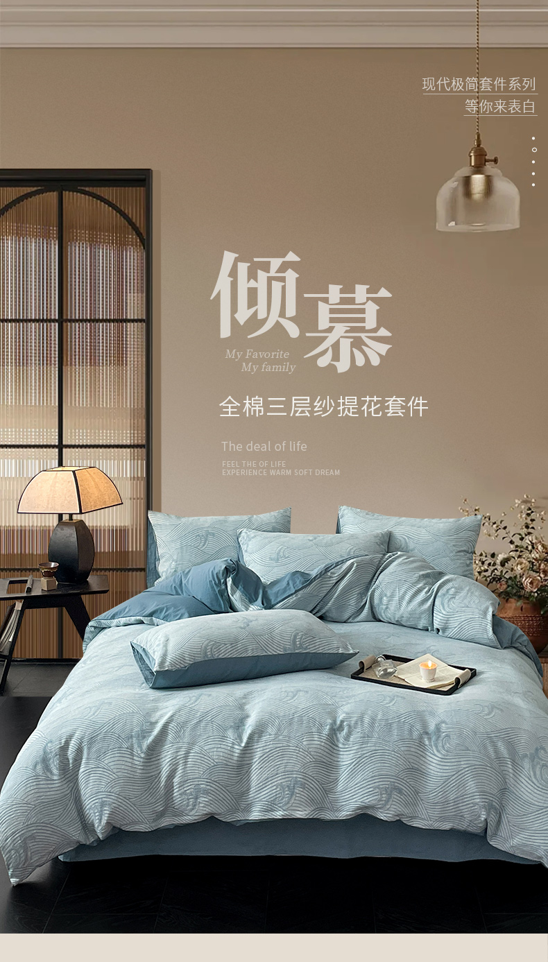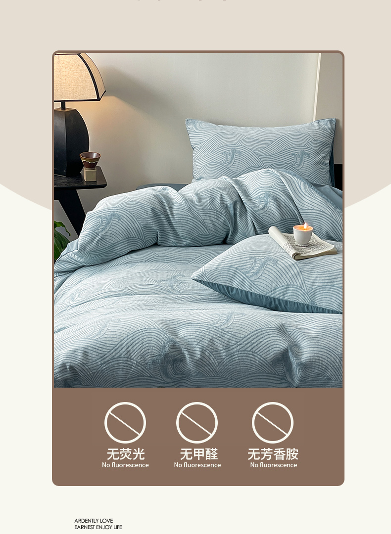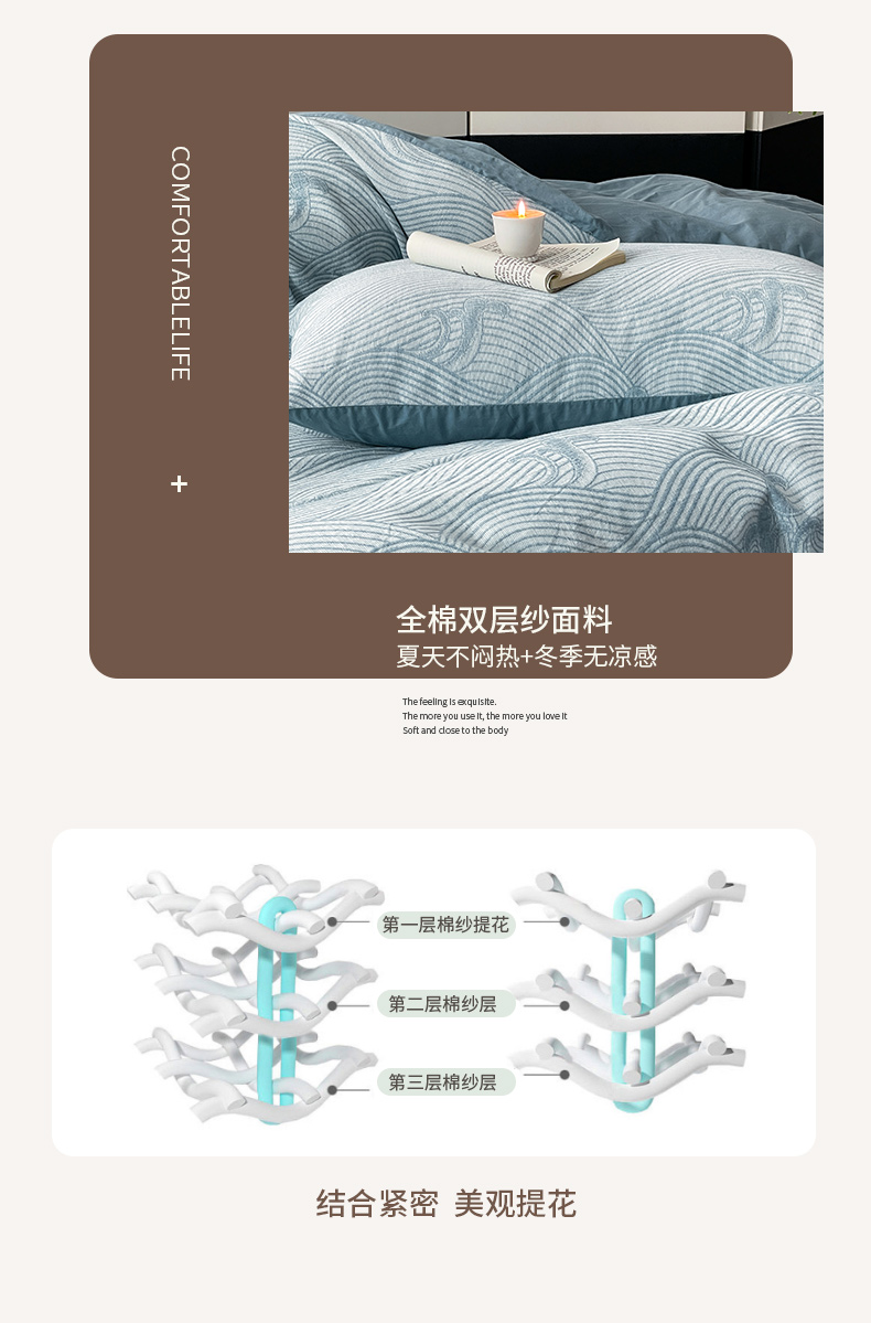 ab家纺 2024新款全棉三层纱提花四件套系列-浪花 浪花-蓝