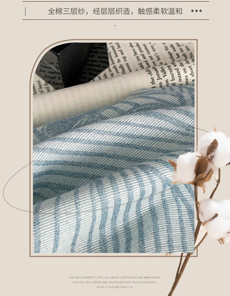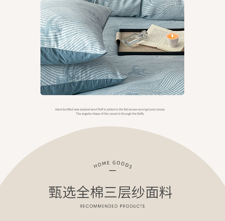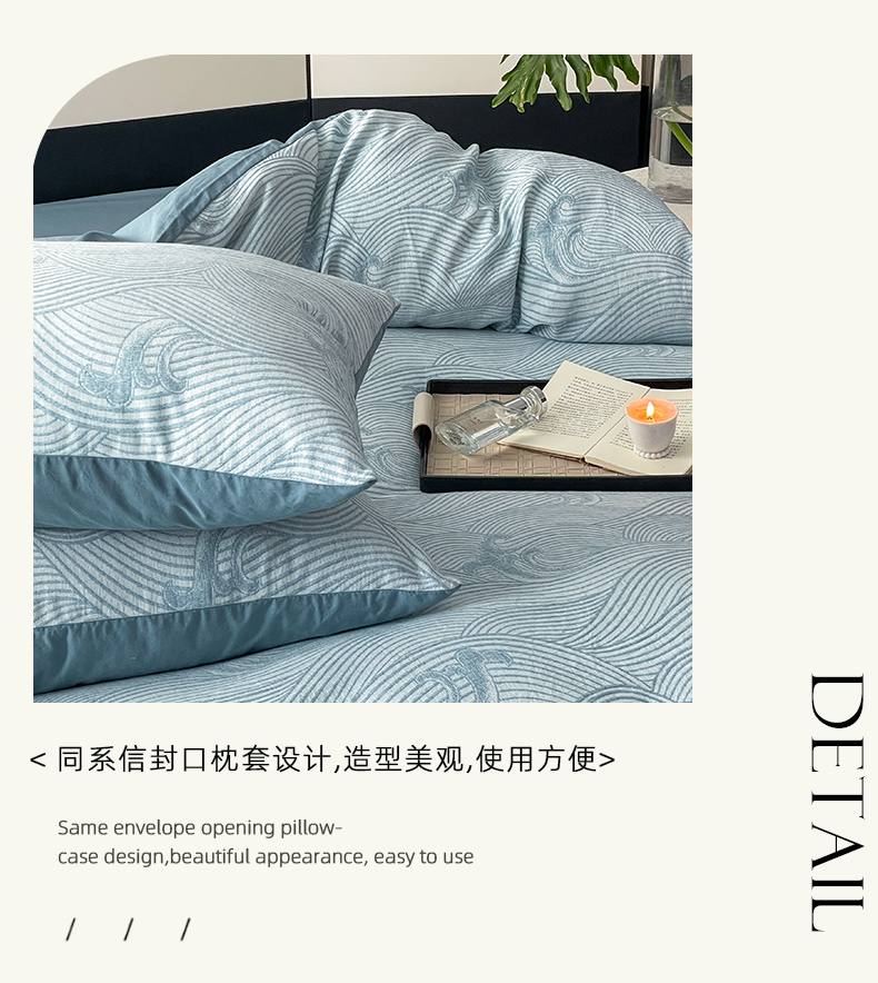 商品名称:ab家纺 2024新款全棉三层纱提花四件套系列-浪花 浪花-蓝