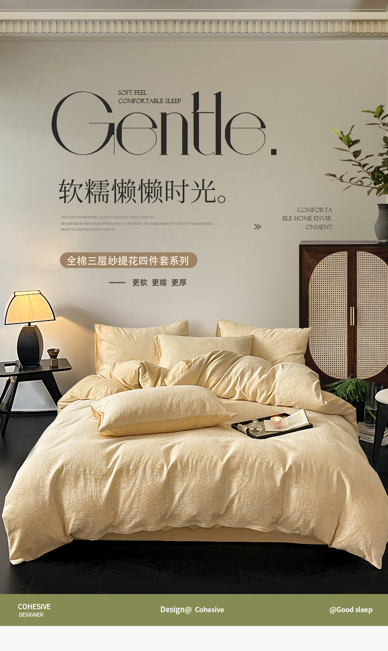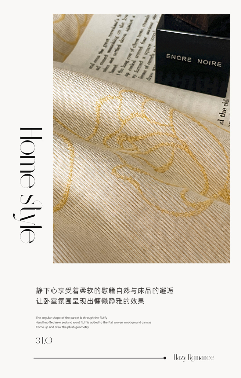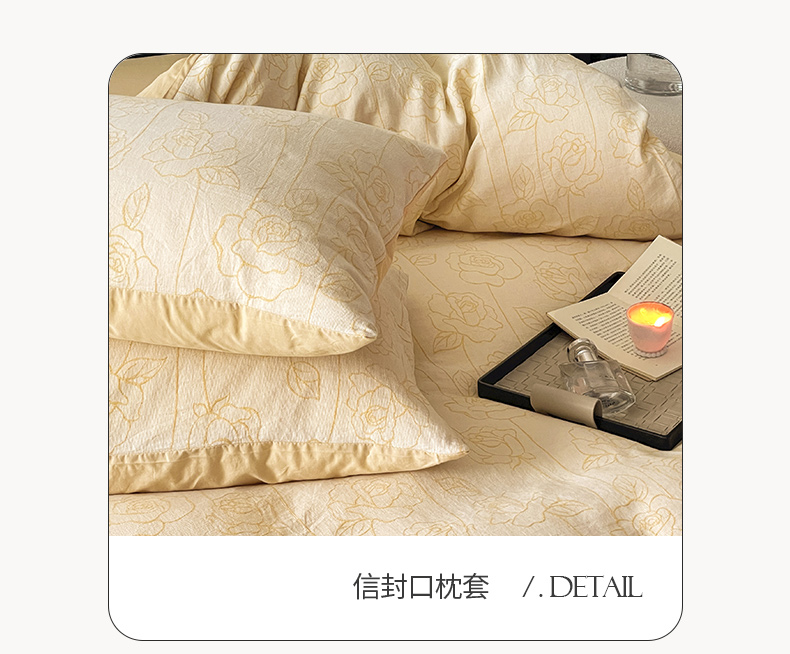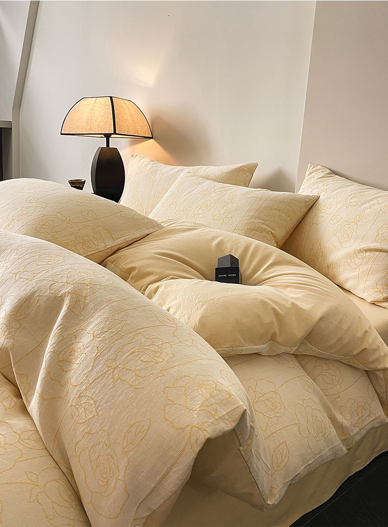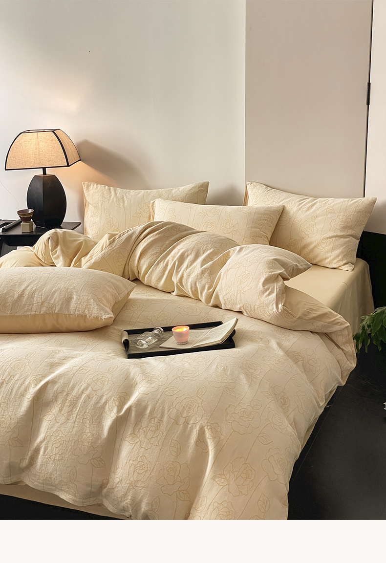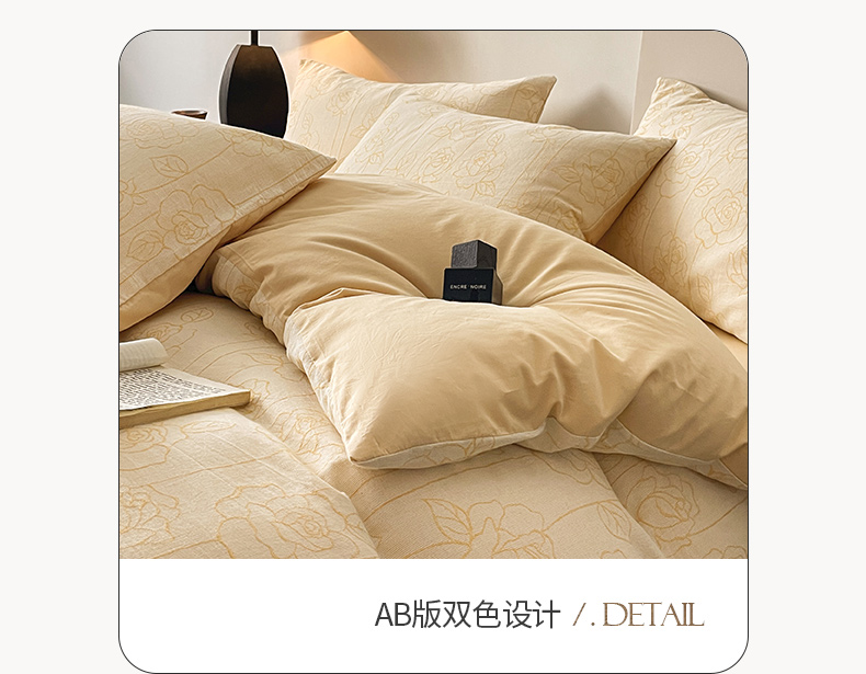 商品名称:ab家纺 2024新款全棉三层纱提花四件套系列-玫瑰 玫瑰杏