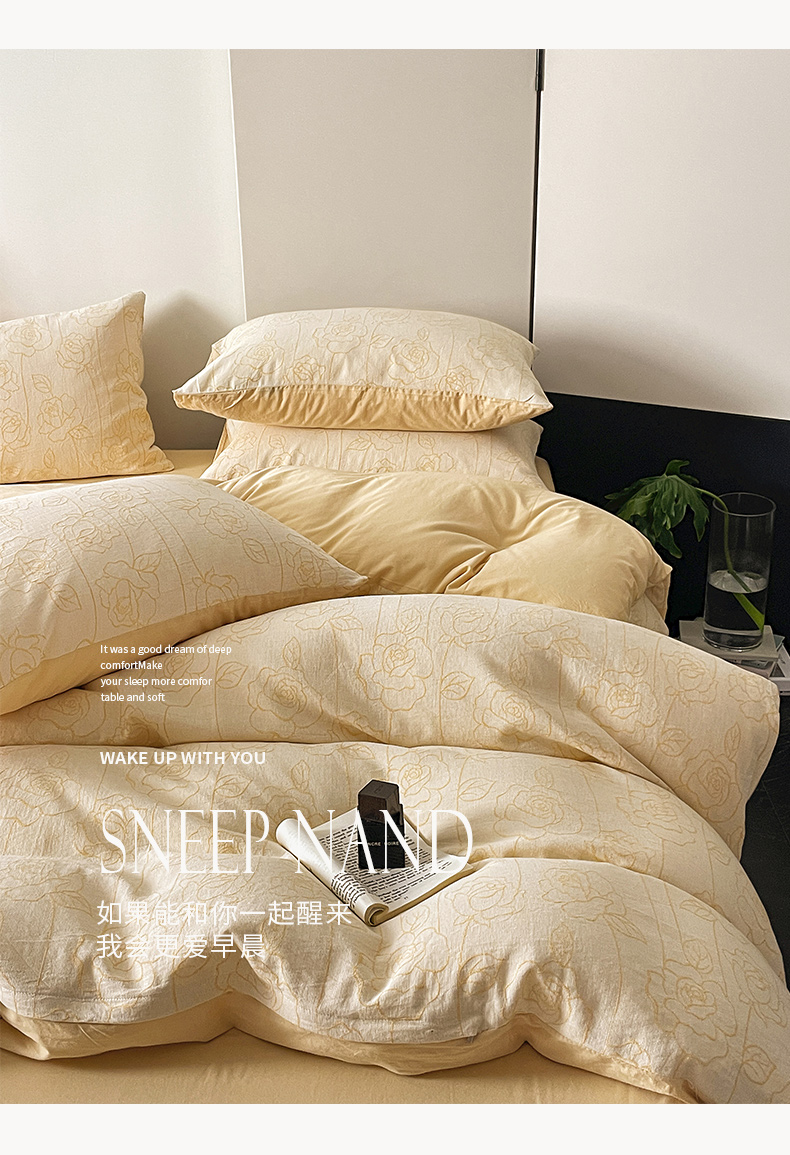 (总)AB家纺 2023新款全棉水洗棉四件套-蔻朵系列,蔻朵-淡奶油微微粉,蔻朵-丁香紫,蔻朵-晴空蓝,蔻朵-微微粉,蔻朵-象牙黄,蔻朵-小森林