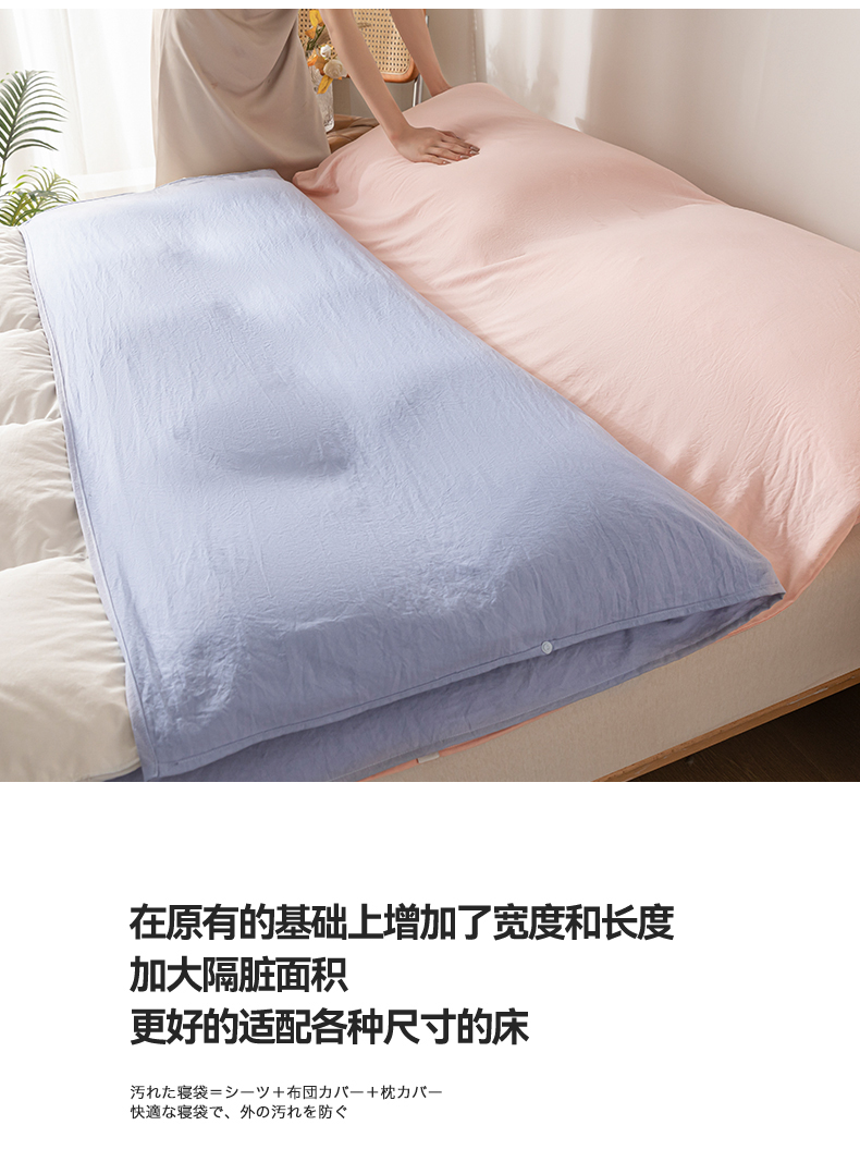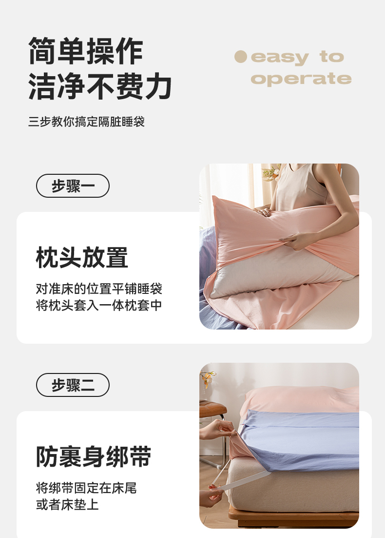 商品名称:古吉梦 2024新款水洗棉隔脏睡袋 星黛紫+奶油粉