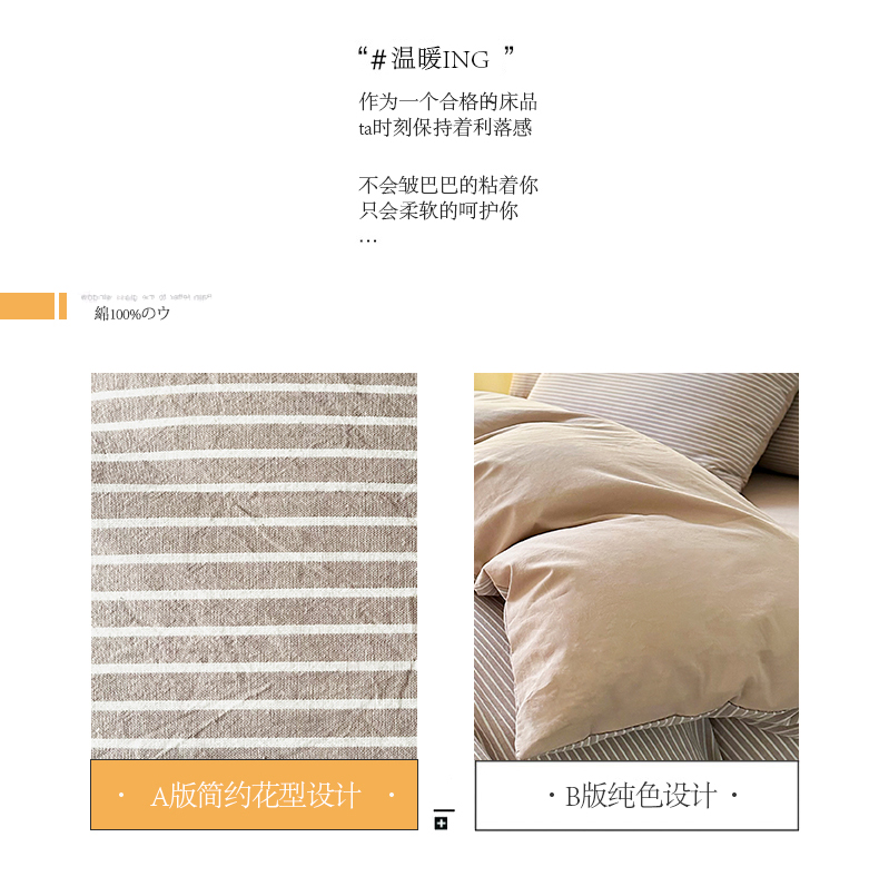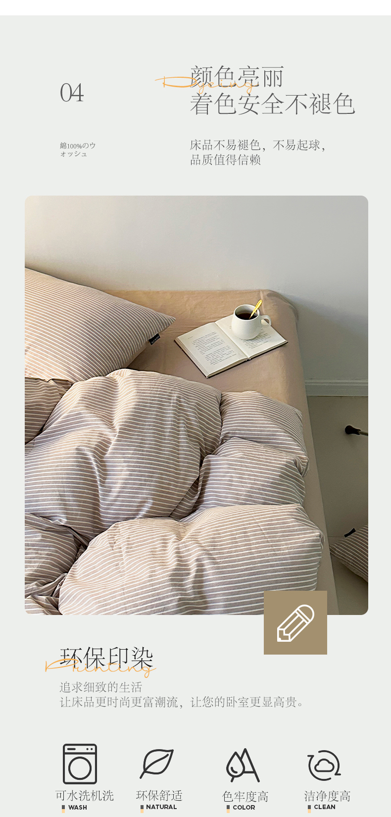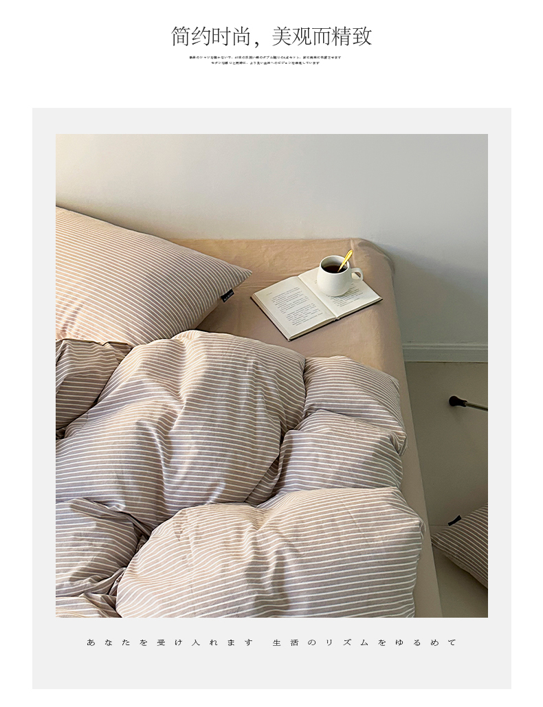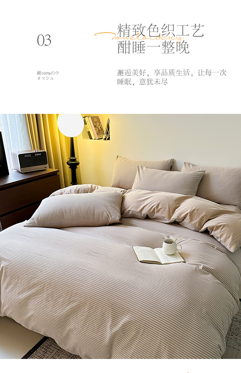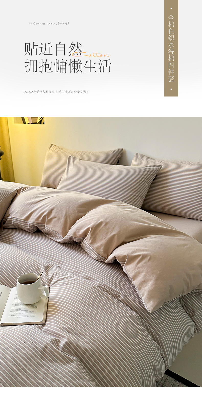 商品名称:小懒猪 2024新款色织水洗棉格子款四件套 米细条