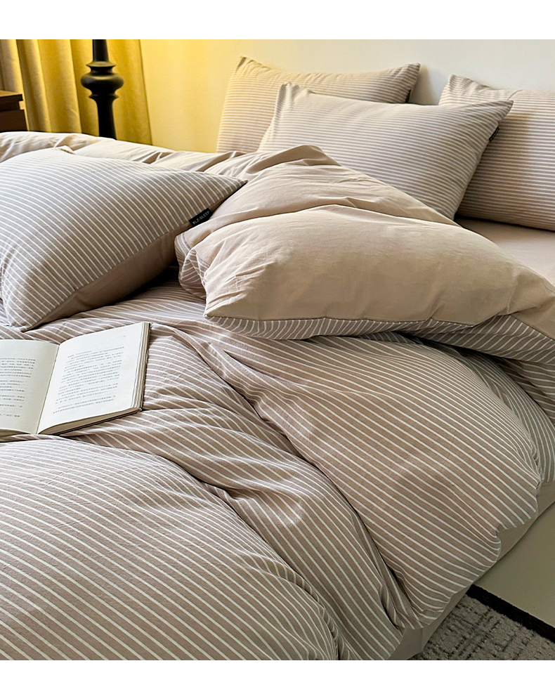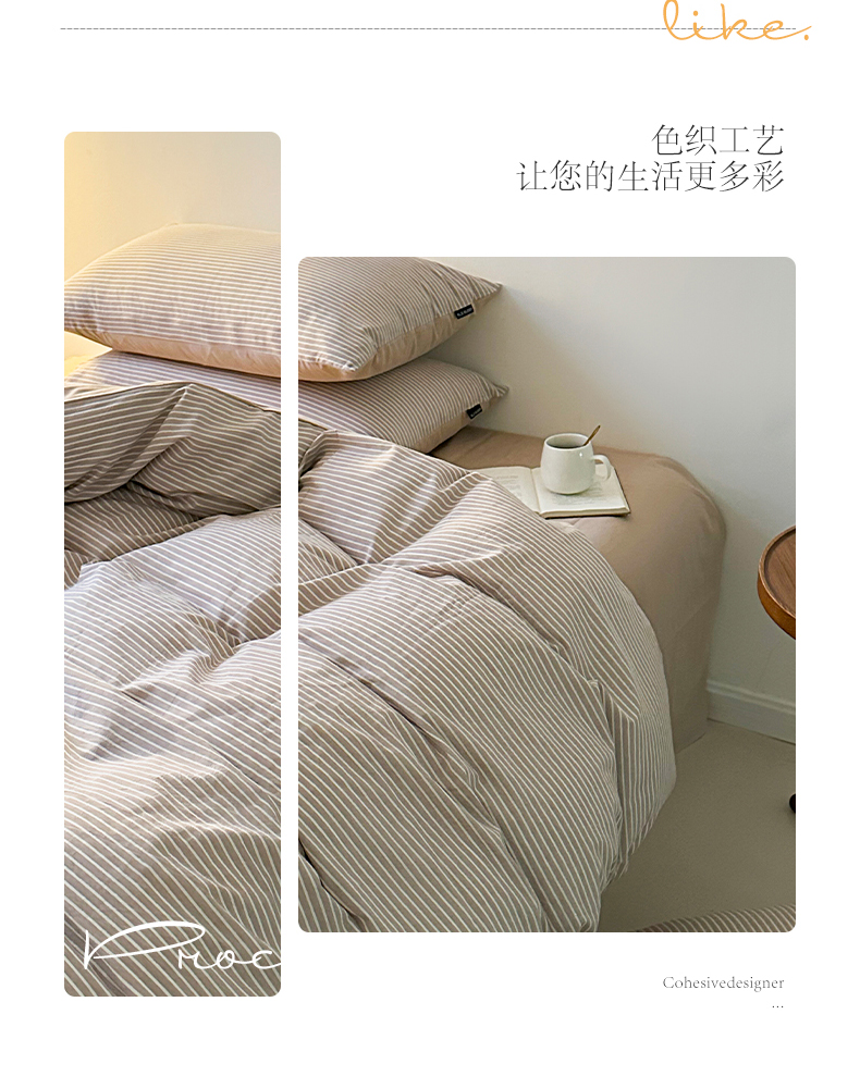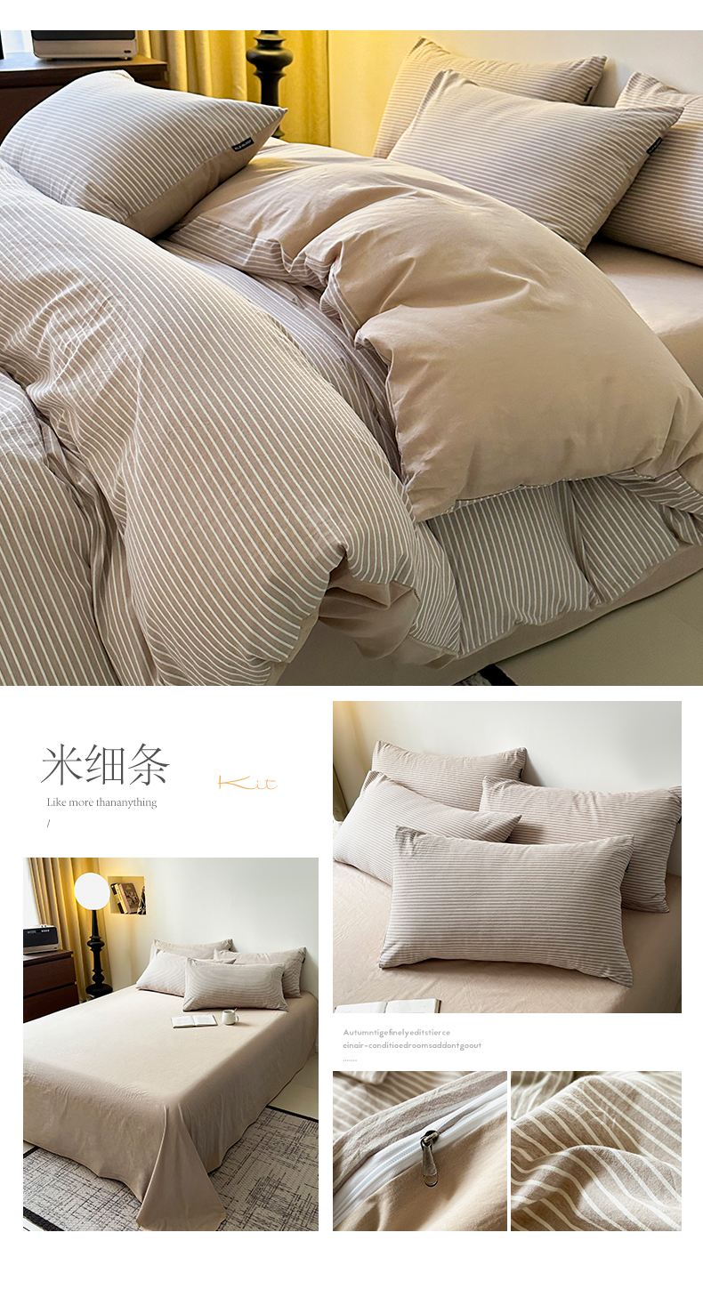 小懒猪 2024新款色织水洗棉格子款四件套 米细条