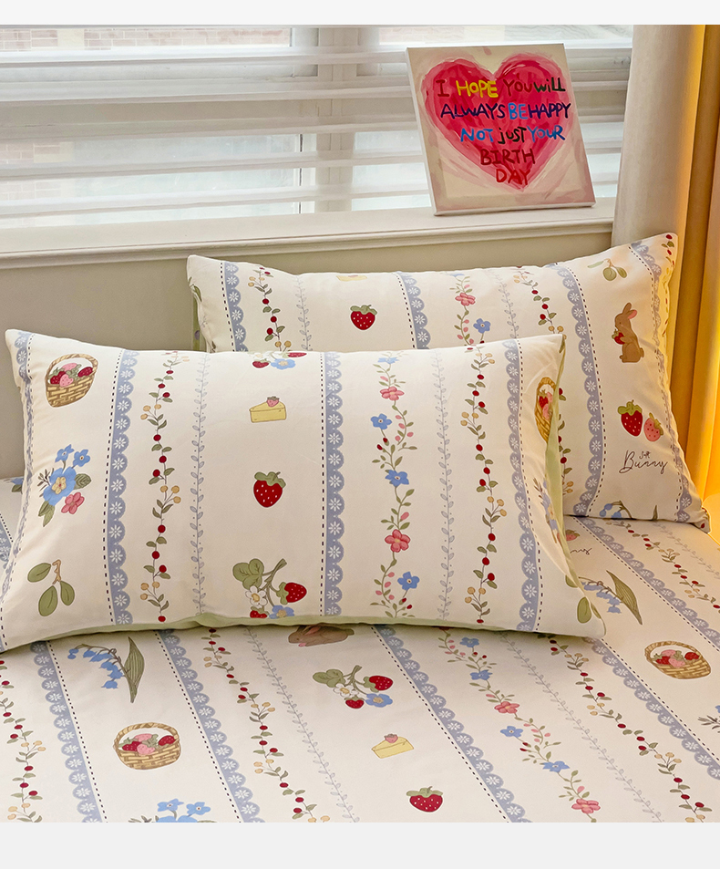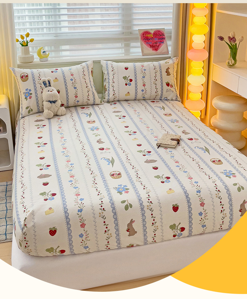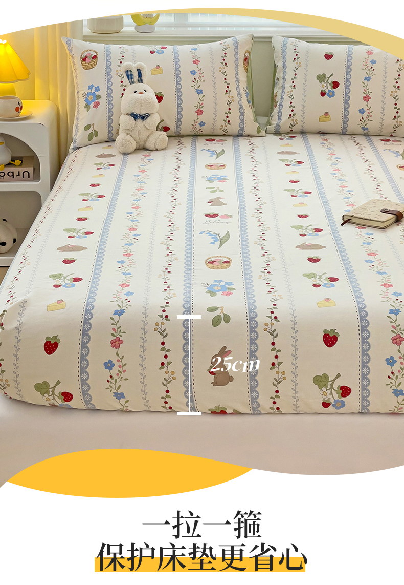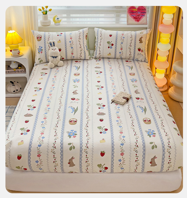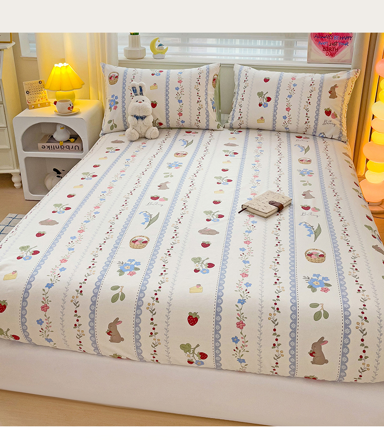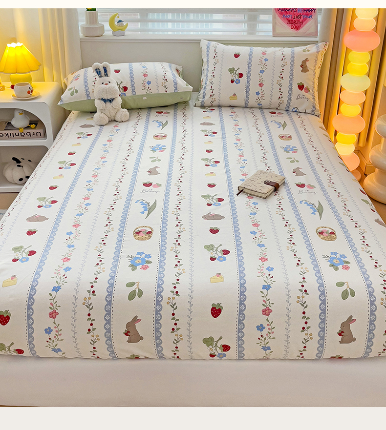 名兮家居 2024新款全棉印花单床笠 草莓兔兔