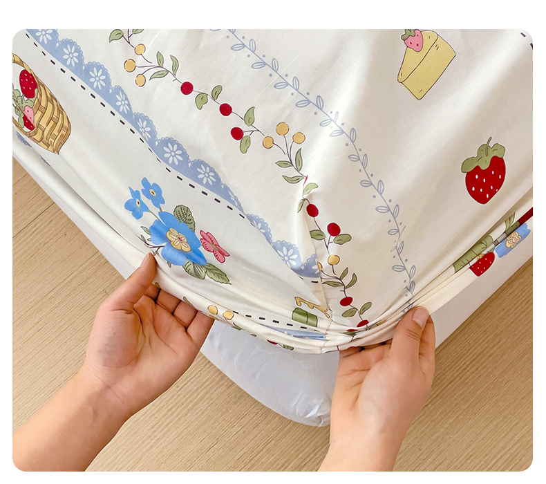 • 91家纺网 家纺一手货源 找家纺 名兮家居 2024新款全棉印花单床笠 草莓兔兔