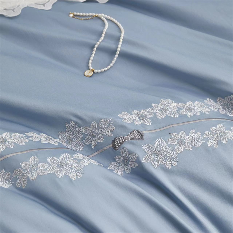 玖玖爱家纺 2024春夏新款180支植物甄棉优莲娜系列四件套 优莲娜-静谧蓝